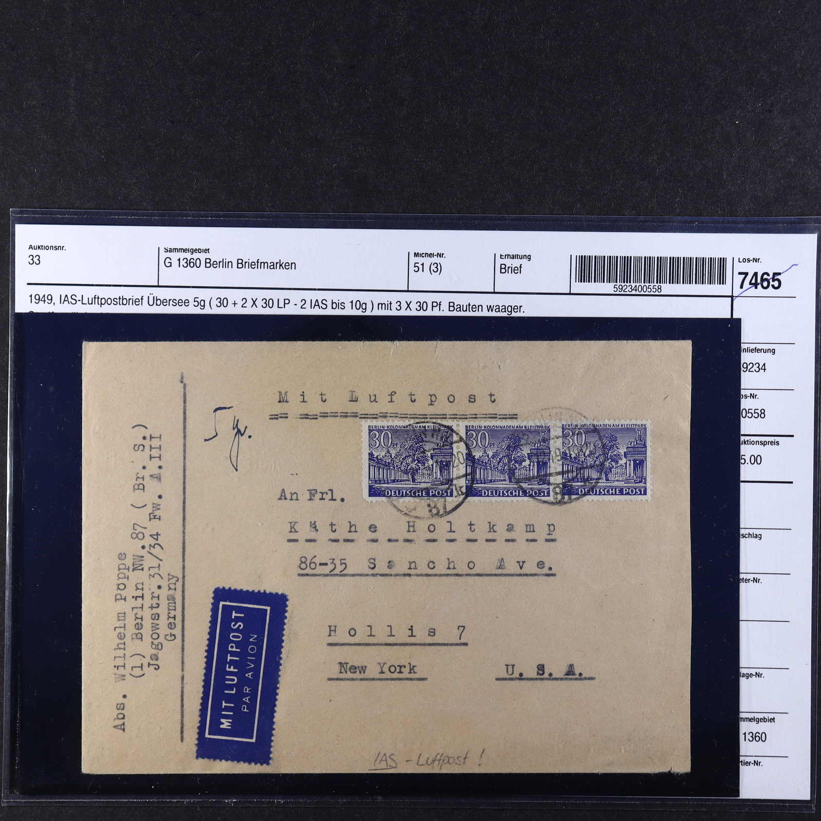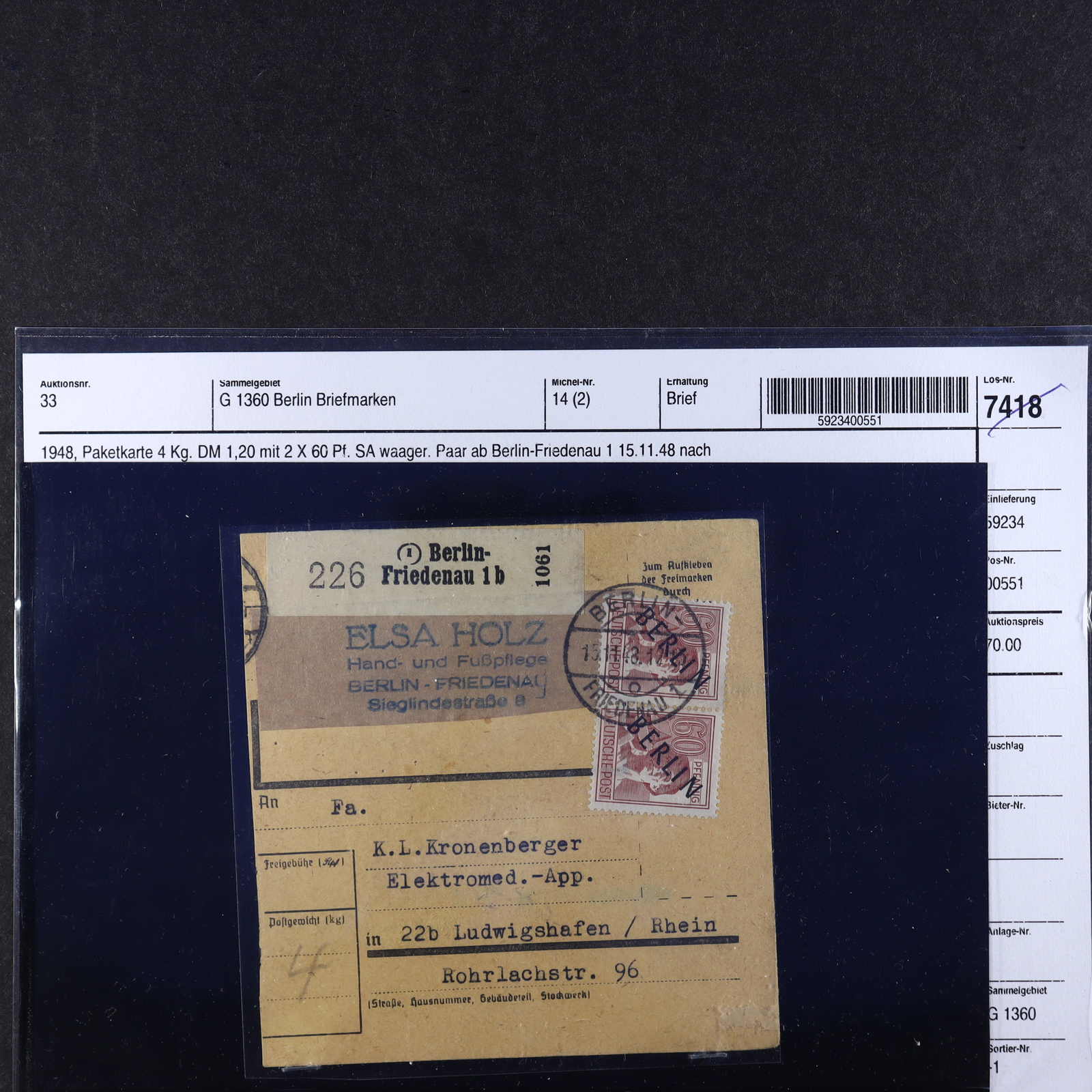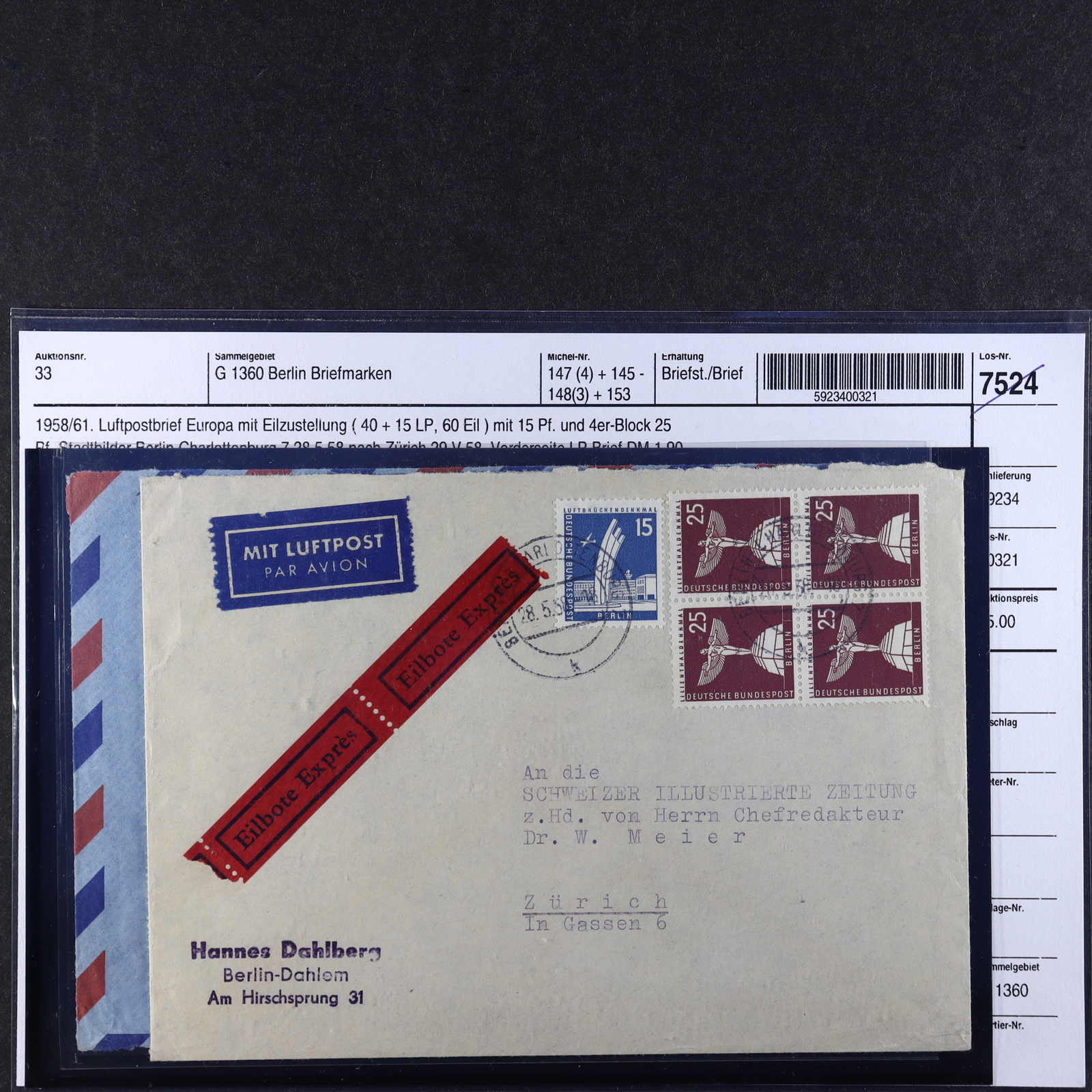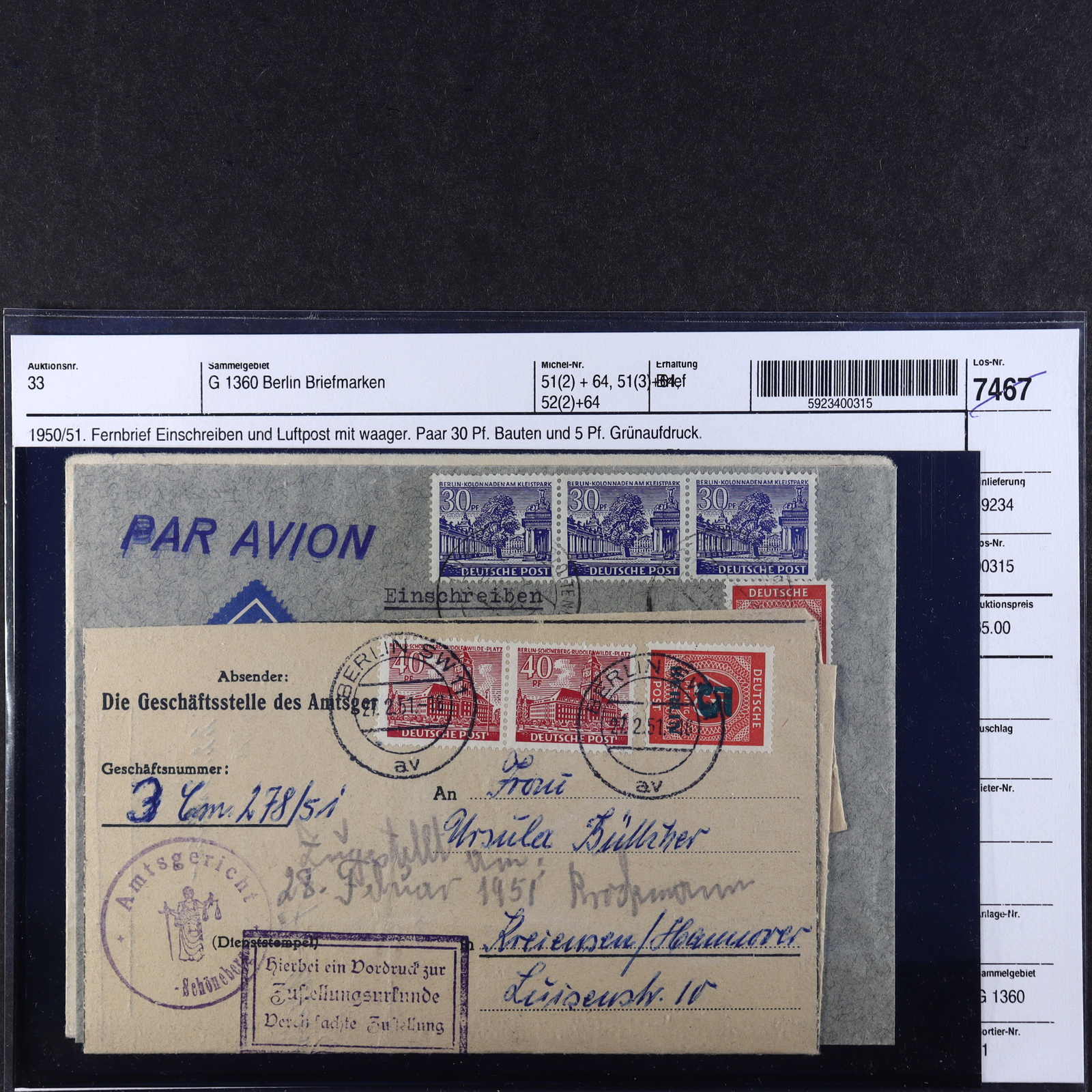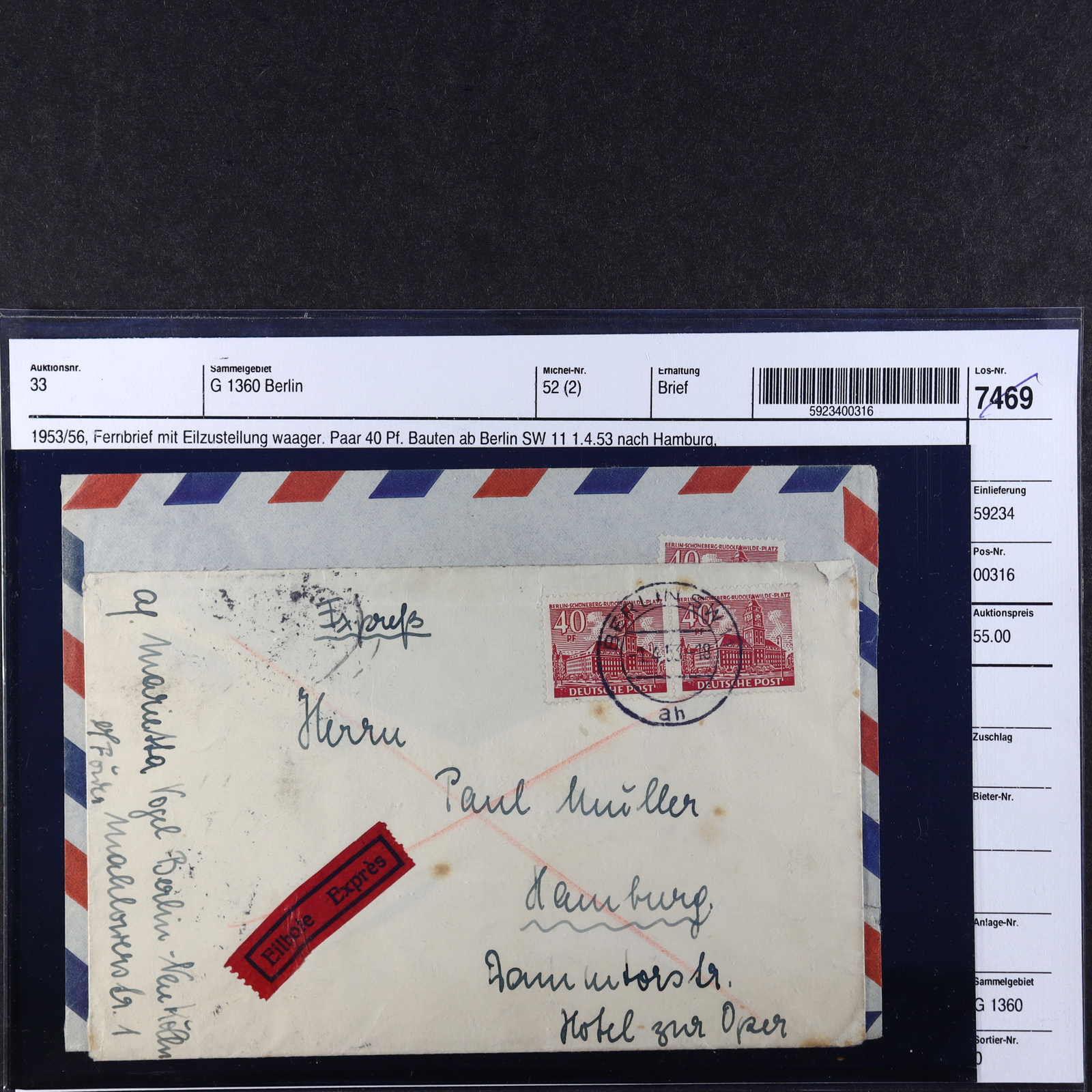 BERLIN: 1948/87, Zusammenstellung von 22 ehemaligen Auktionslosen aus der Gabisch-Sammlung, meist Briefe und Karten ab Schwarzaufdruck, dabei viele Belege mit Zusatzleistungen und/oder mit Einheiten, nur mit Freimarkenausgaben