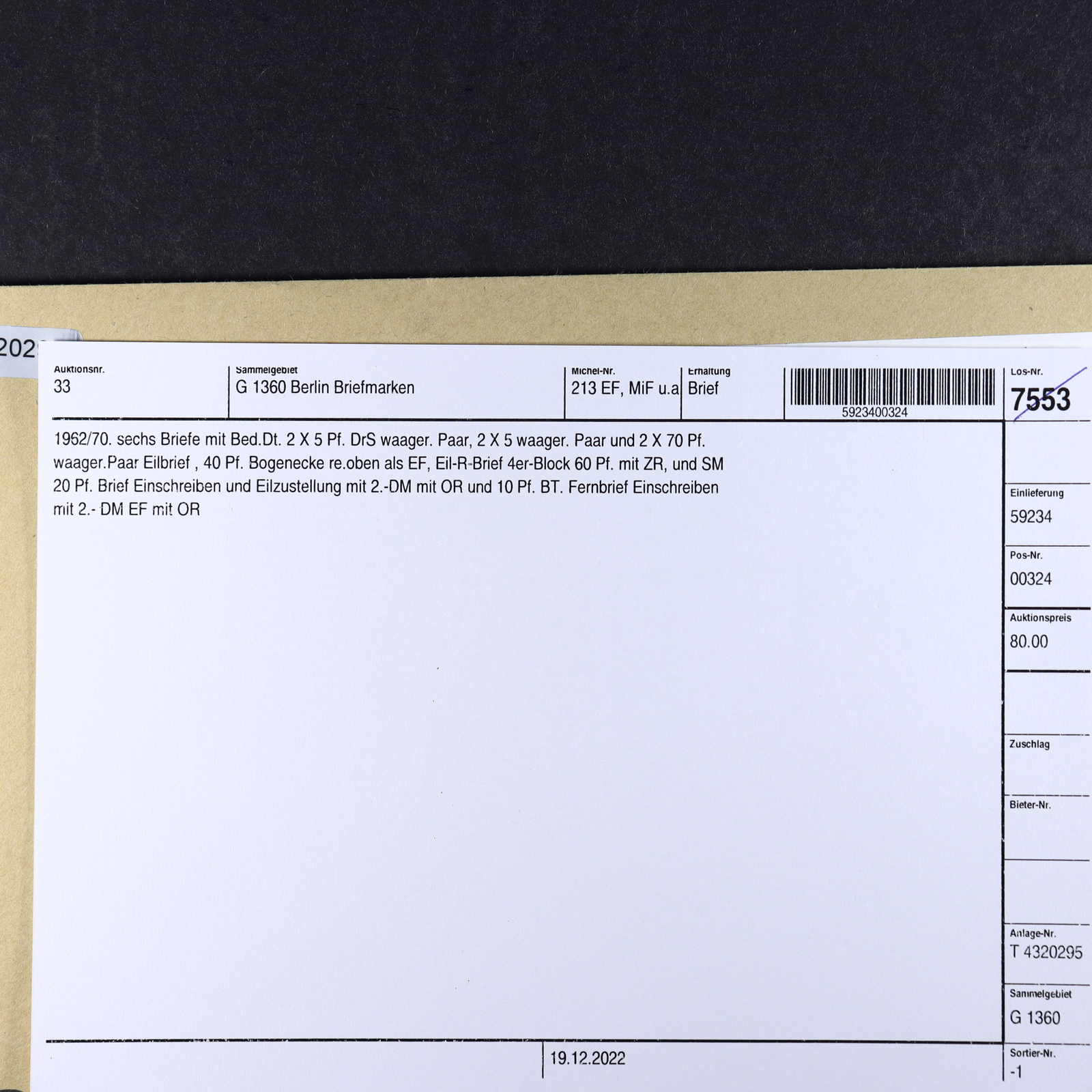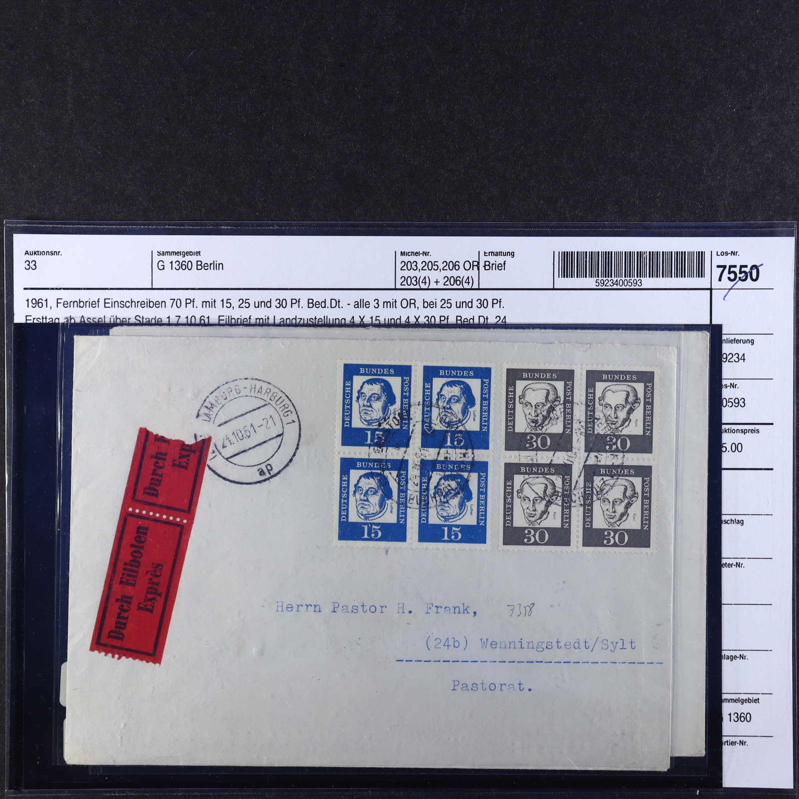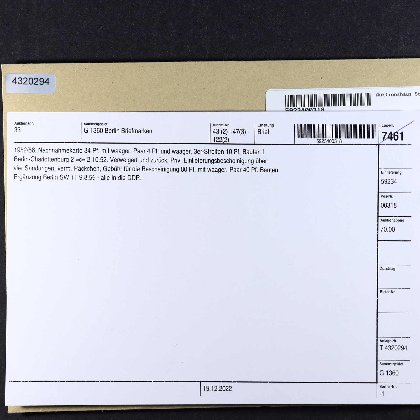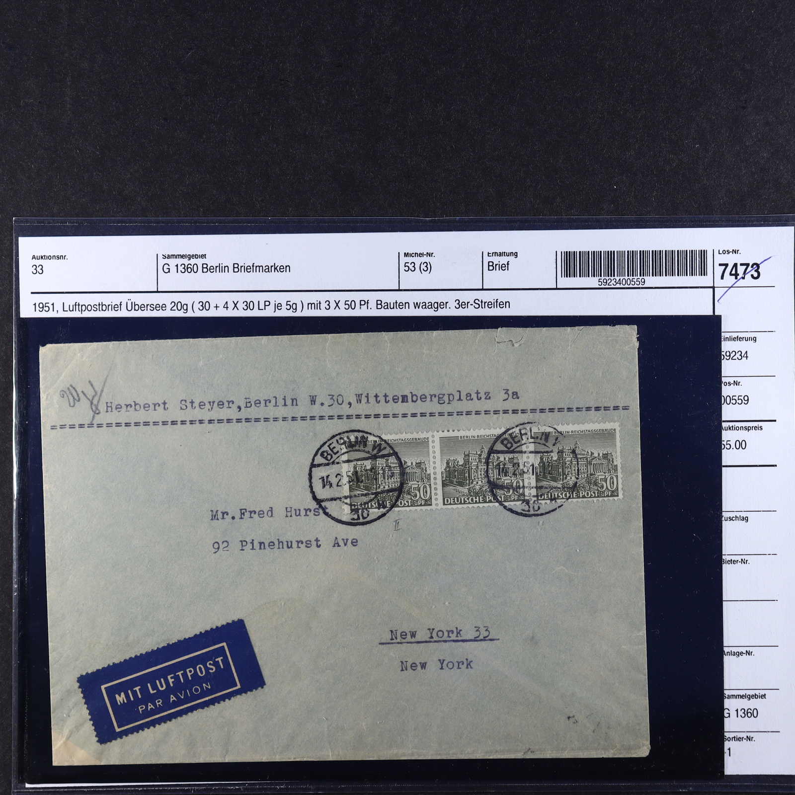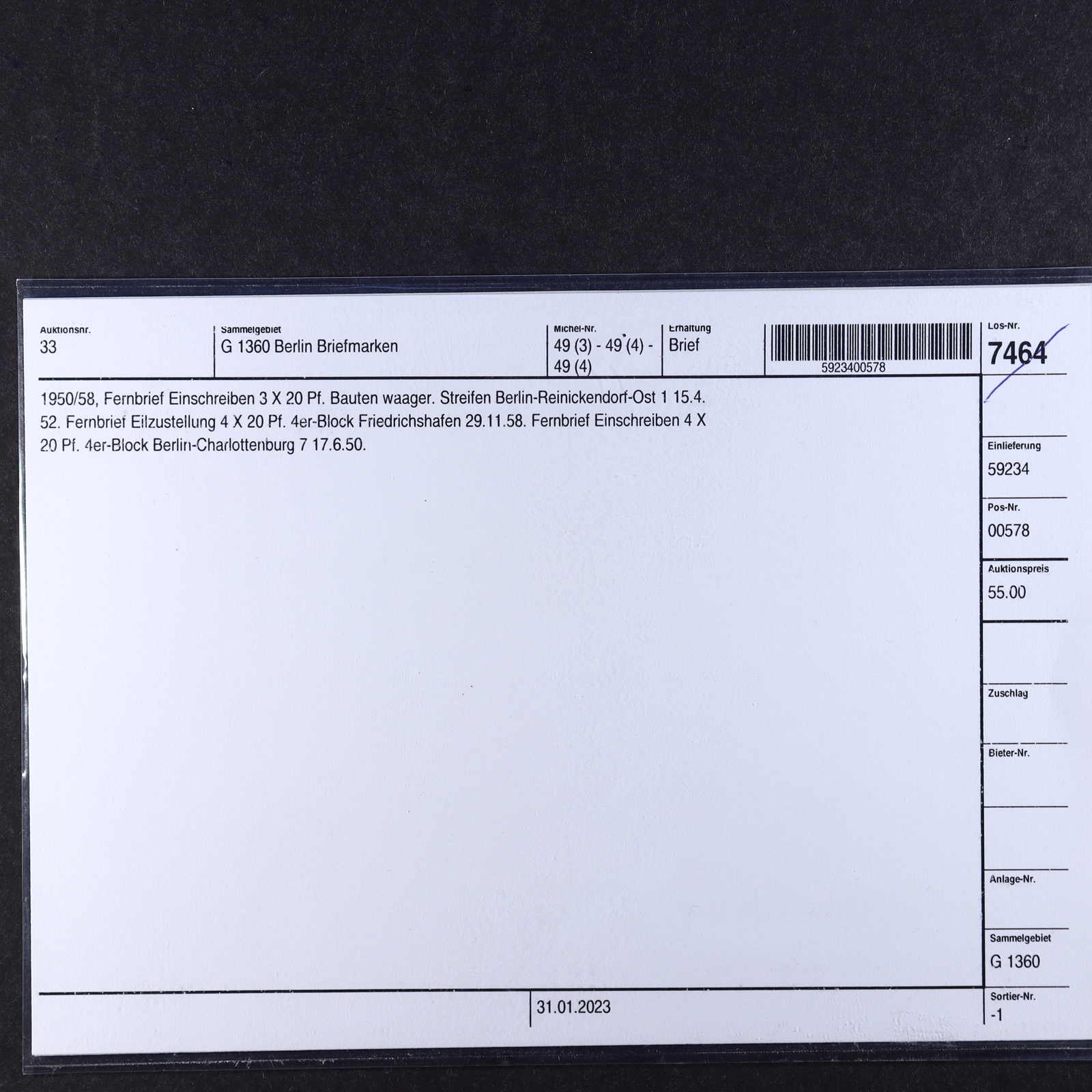 BERLIN: 1948/87, Zusammenstellung von 22 ehemaligen Auktionslosen aus der Gabisch-Sammlung, meist Briefe und Karten ab Schwarzaufdruck, dabei viele Belege mit Zusatzleistungen und/oder mit Einheiten, nur mit Freimarkenausgaben