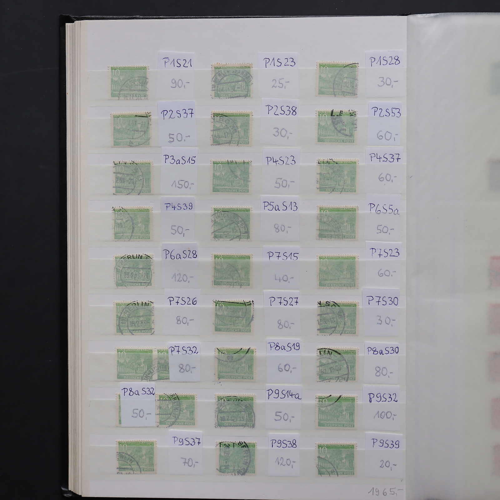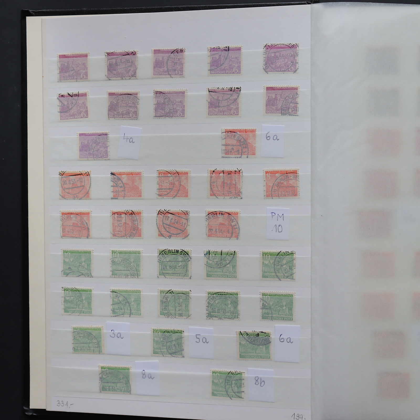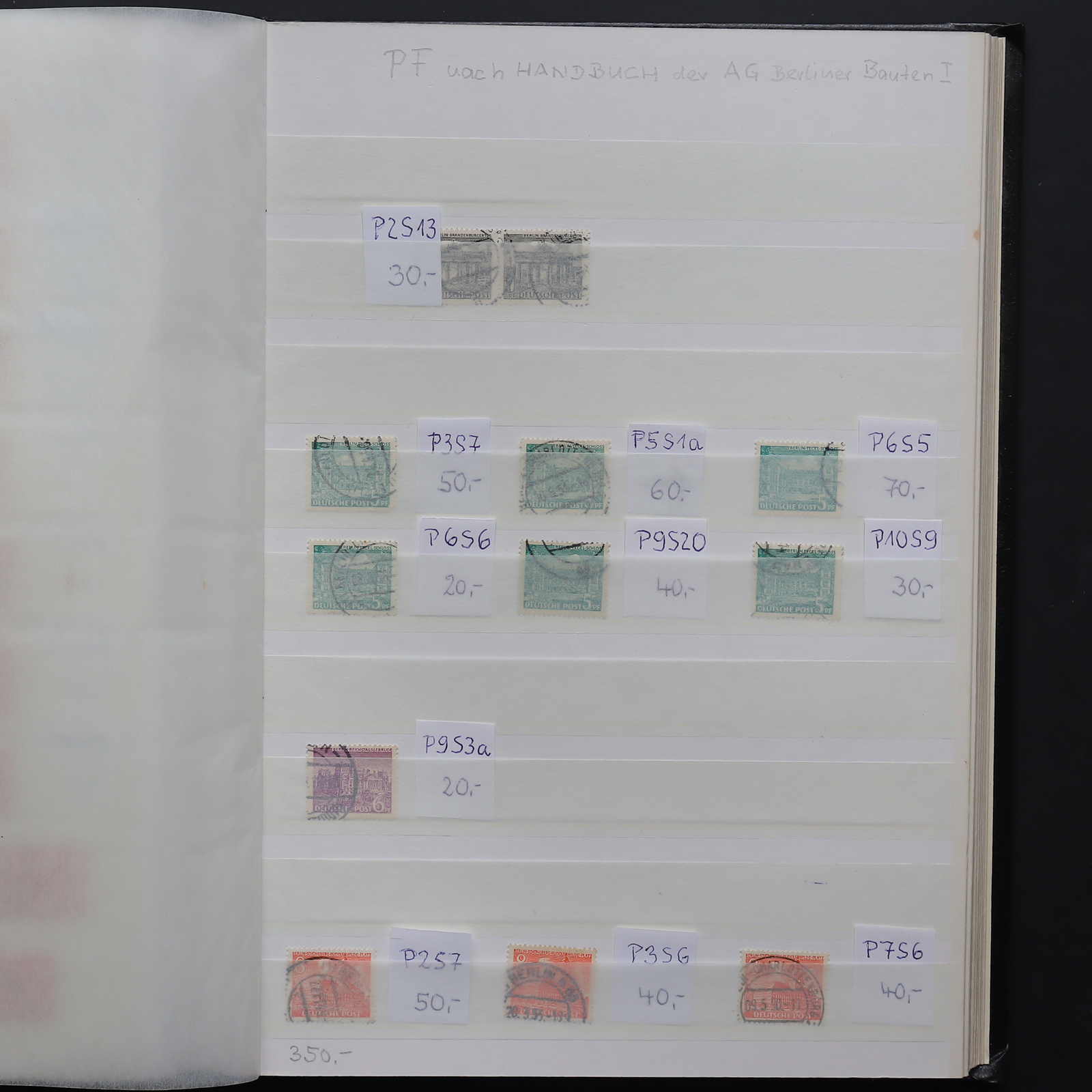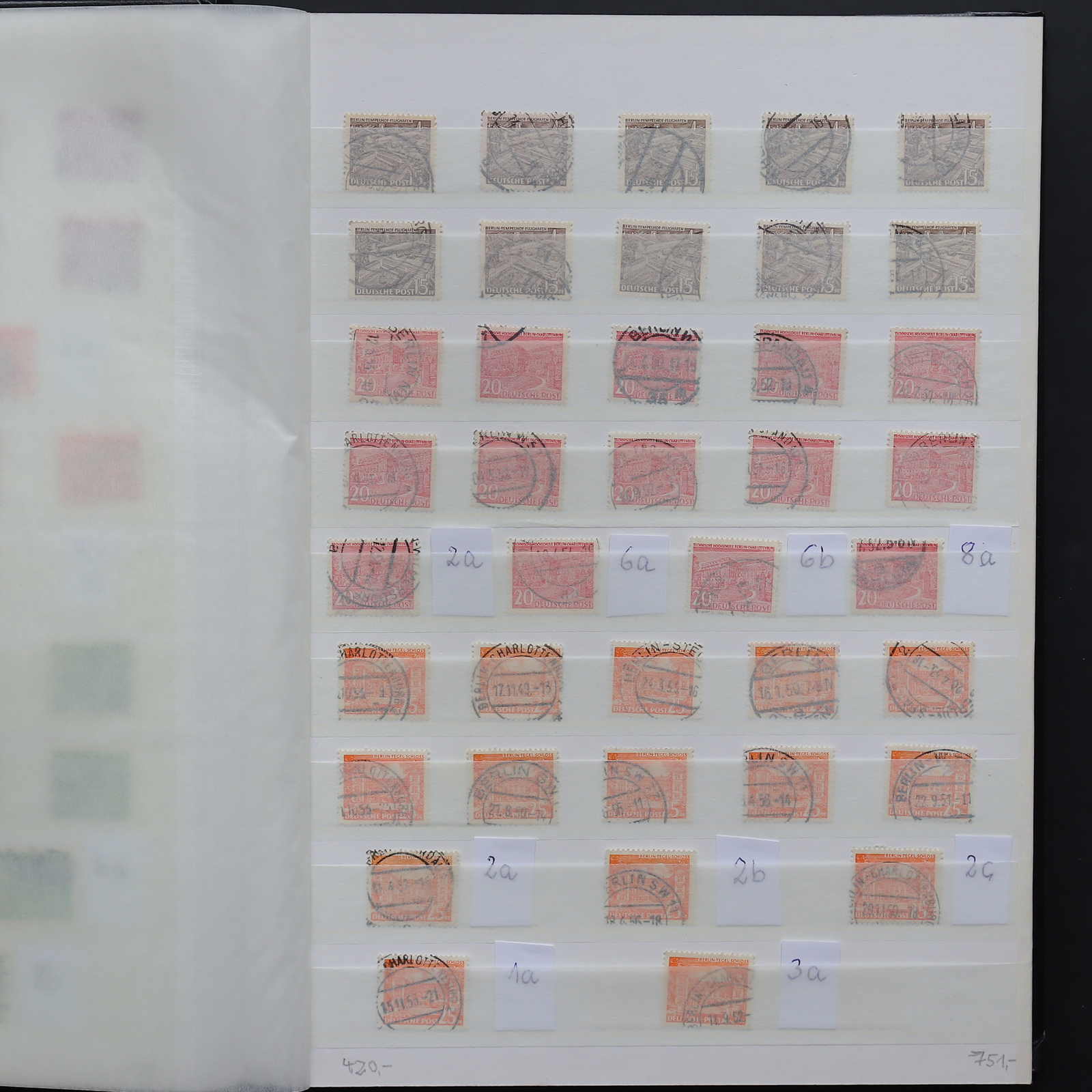 BERLIN: 1949, meist gestempelte Sammlung der Ausgabe Berliner Bauten I mit PM, SM, TM und S, über 1.000 Plattenfehler inkl. waagerechte und senkrechte Paare im E.-Buch, Gesamtkatalogwert über 45.000 ME, gute Qualität (Image) (imagea)