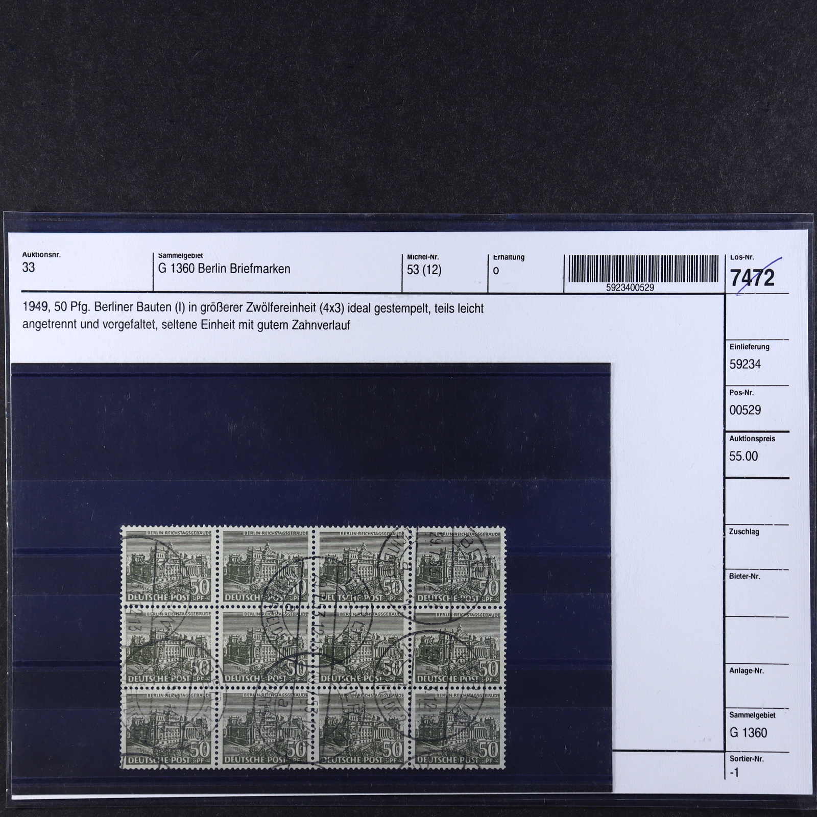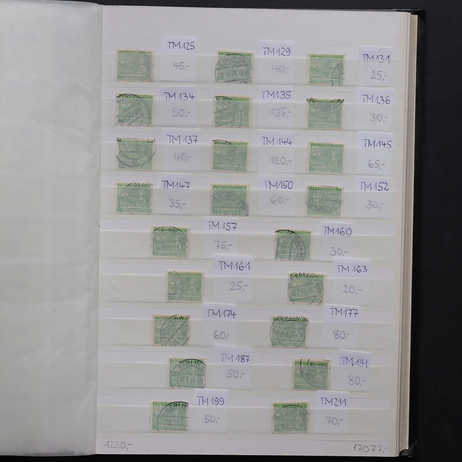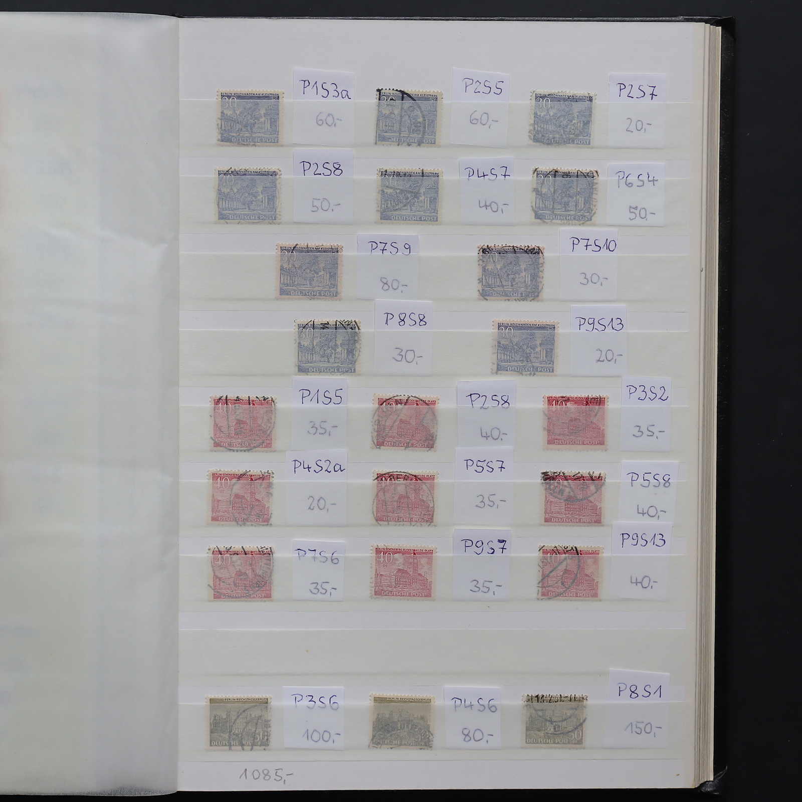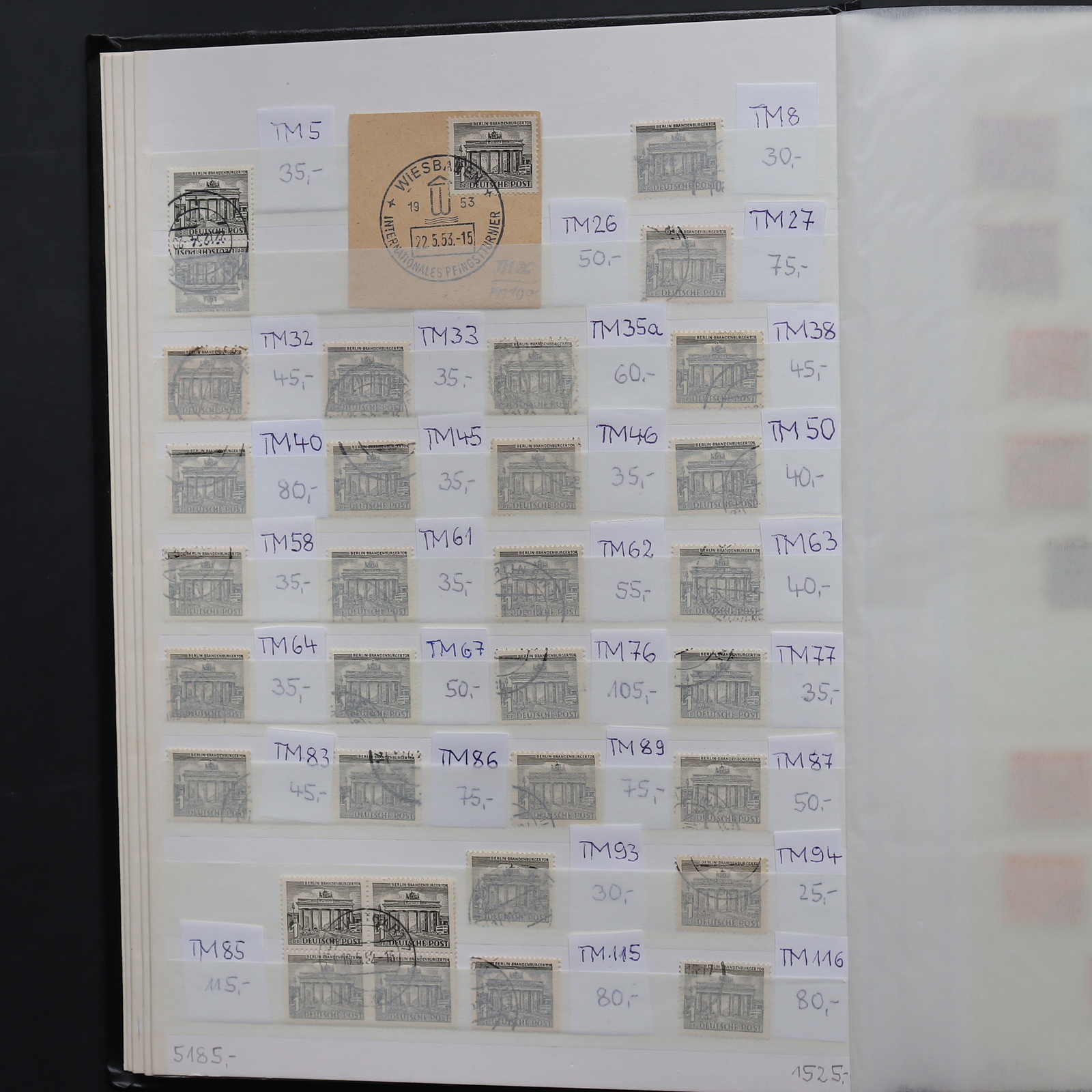 BERLIN: 1949, meist gestempelte Sammlung der Ausgabe Berliner Bauten I mit PM, SM, TM und S, über 1.000 Plattenfehler inkl. waagerechte und senkrechte Paare im E.-Buch, Gesamtkatalogwert über 45.000 ME, gute Qualität (Image) (imagea)