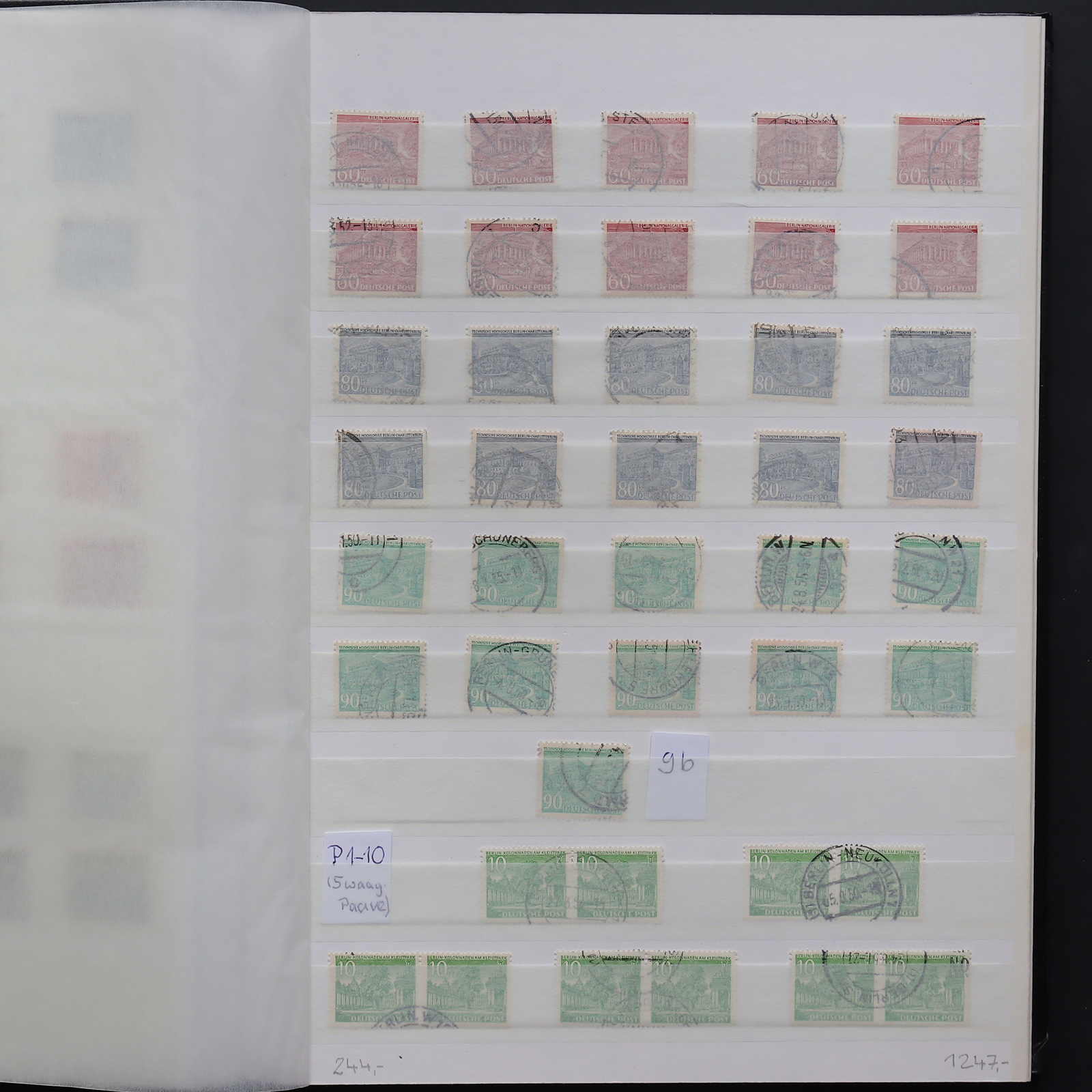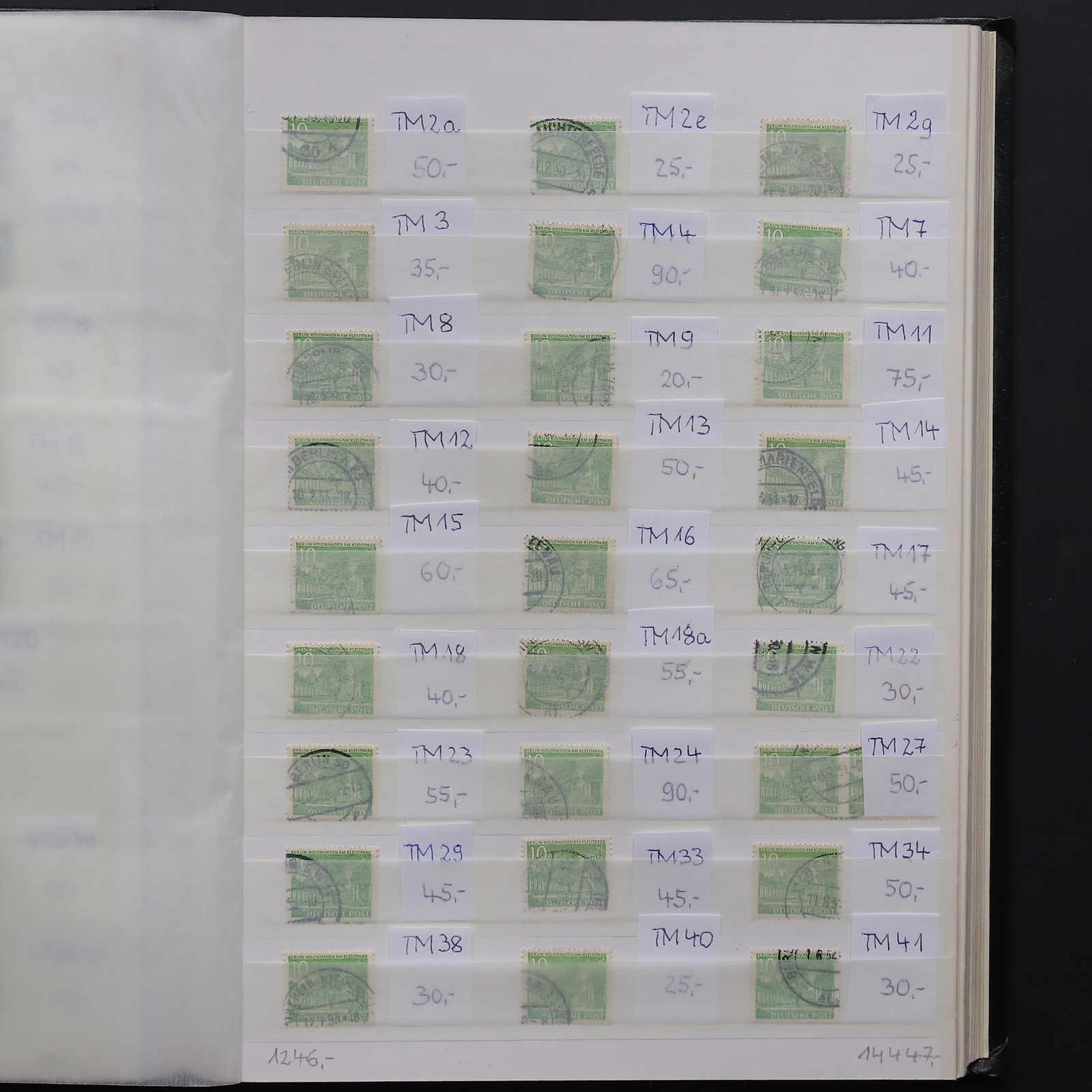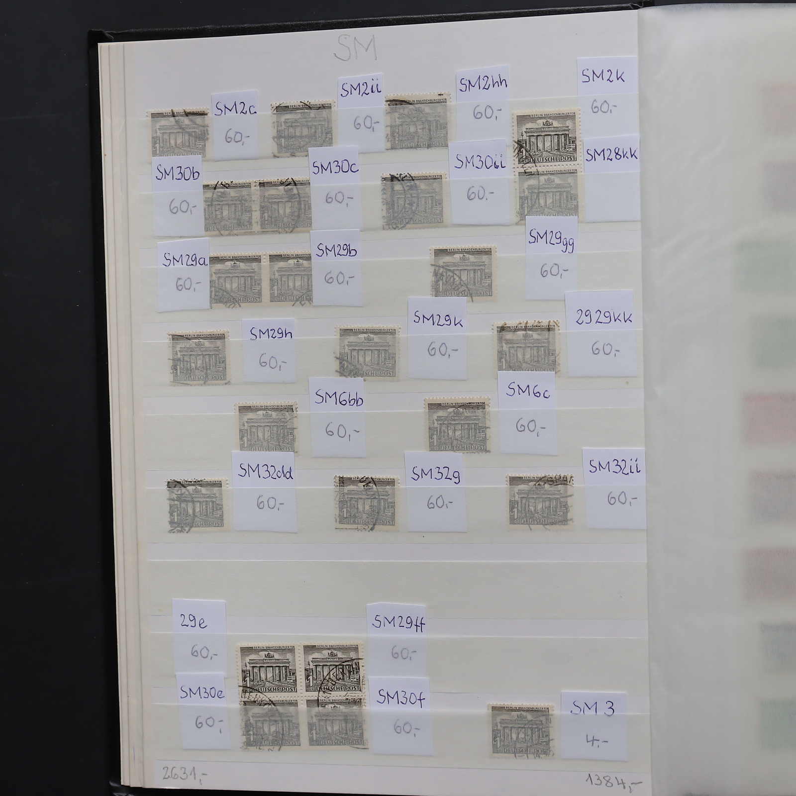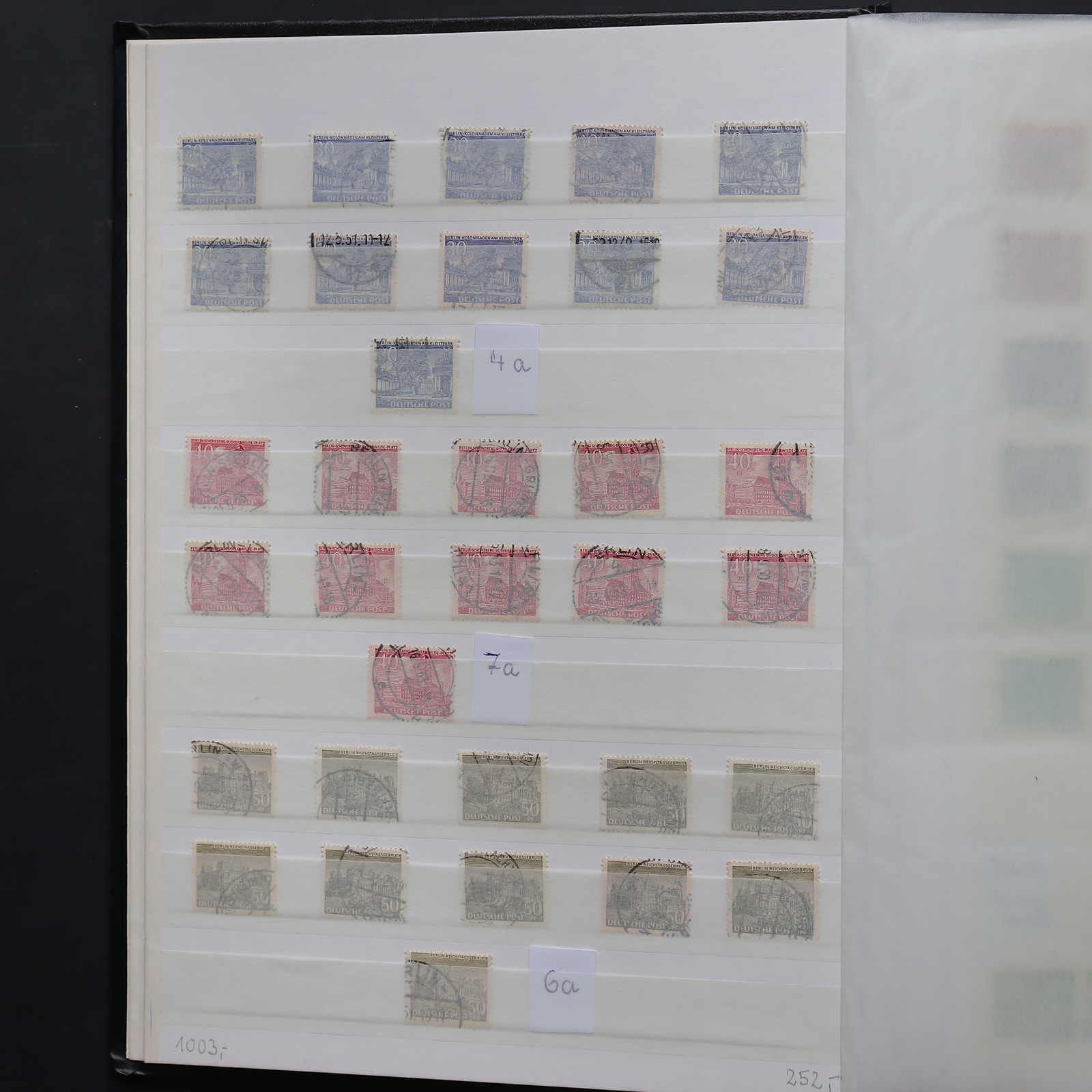 BERLIN: 1949, meist gestempelte Sammlung der Ausgabe Berliner Bauten I mit PM, SM, TM und S, über 1.000 Plattenfehler inkl. waagerechte und senkrechte Paare im E.-Buch, Gesamtkatalogwert über 45.000 ME, gute Qualität (Image) (imagea)