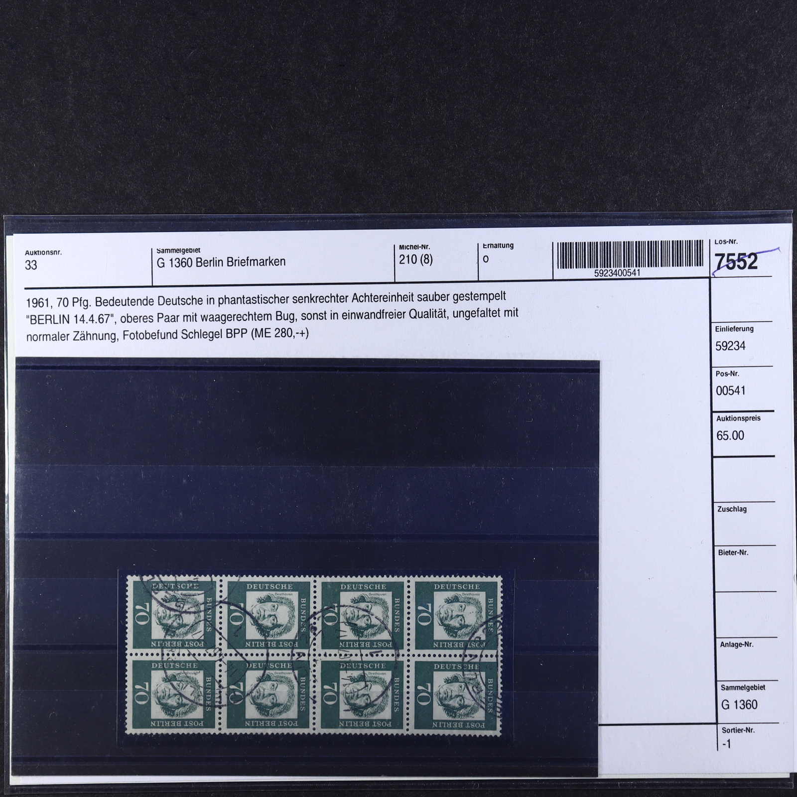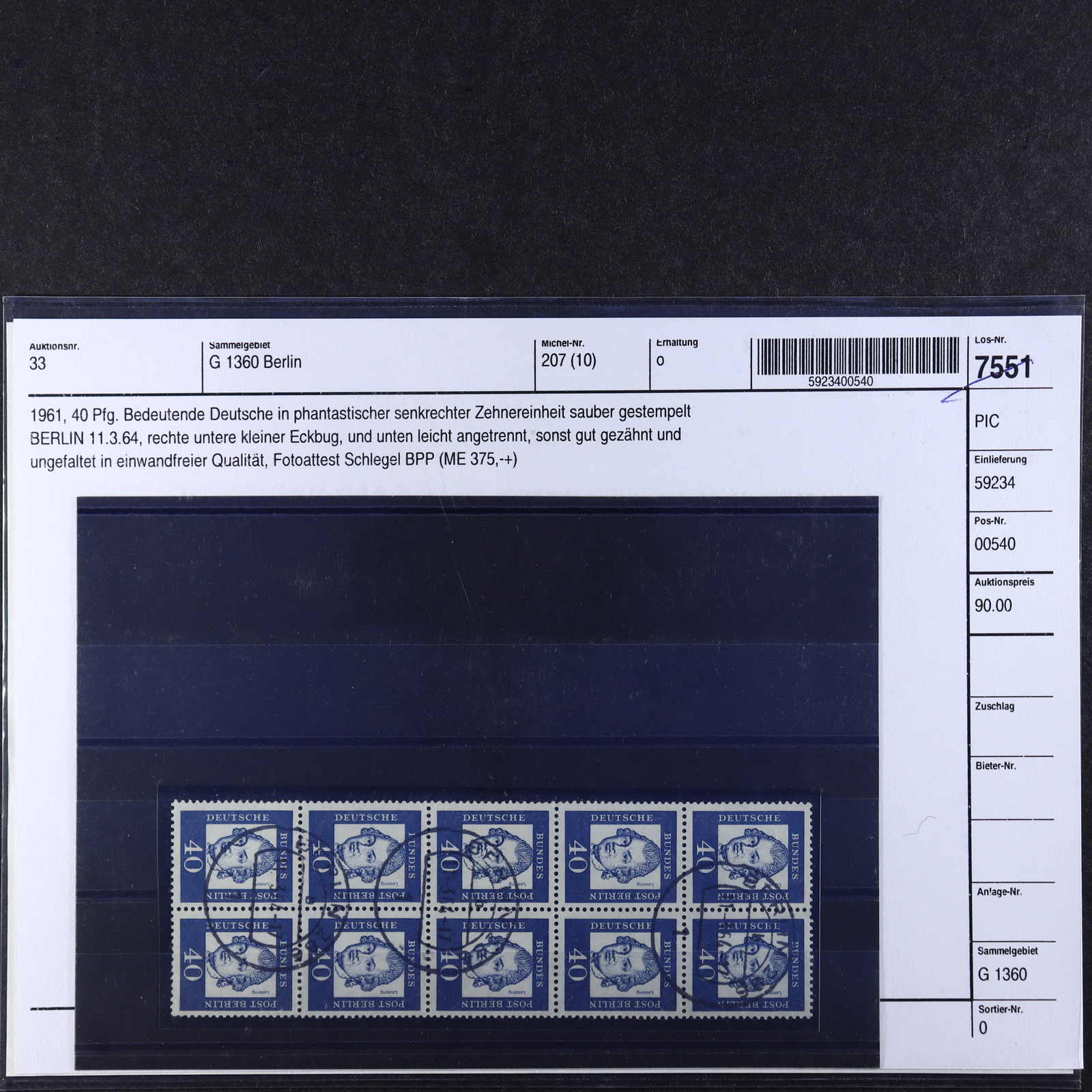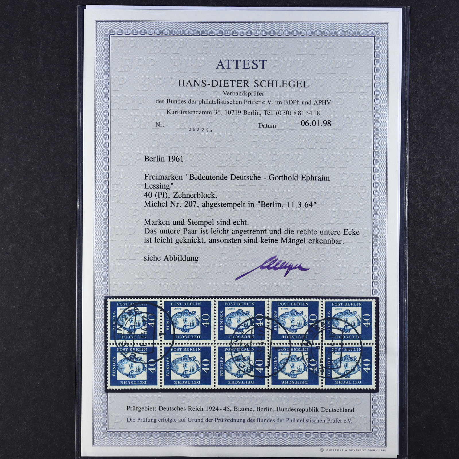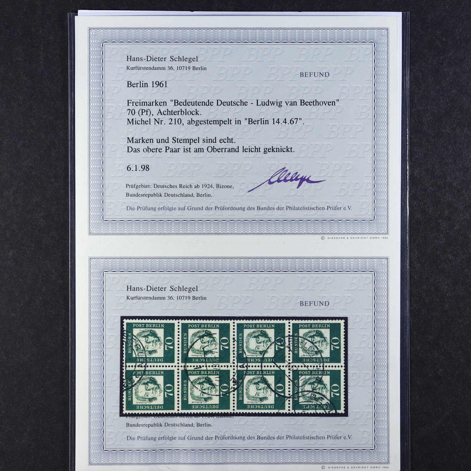 frankiert, enthalten sind auch 3 größere Einheiten Bauten I und Bedeutende Deutsche, letztere mit Fotoattest bzw. -befund Schlegel BPP, meist gute Qualität, ehemaliger Ausrufpreis 1.395 Euro (Image) (imagea)