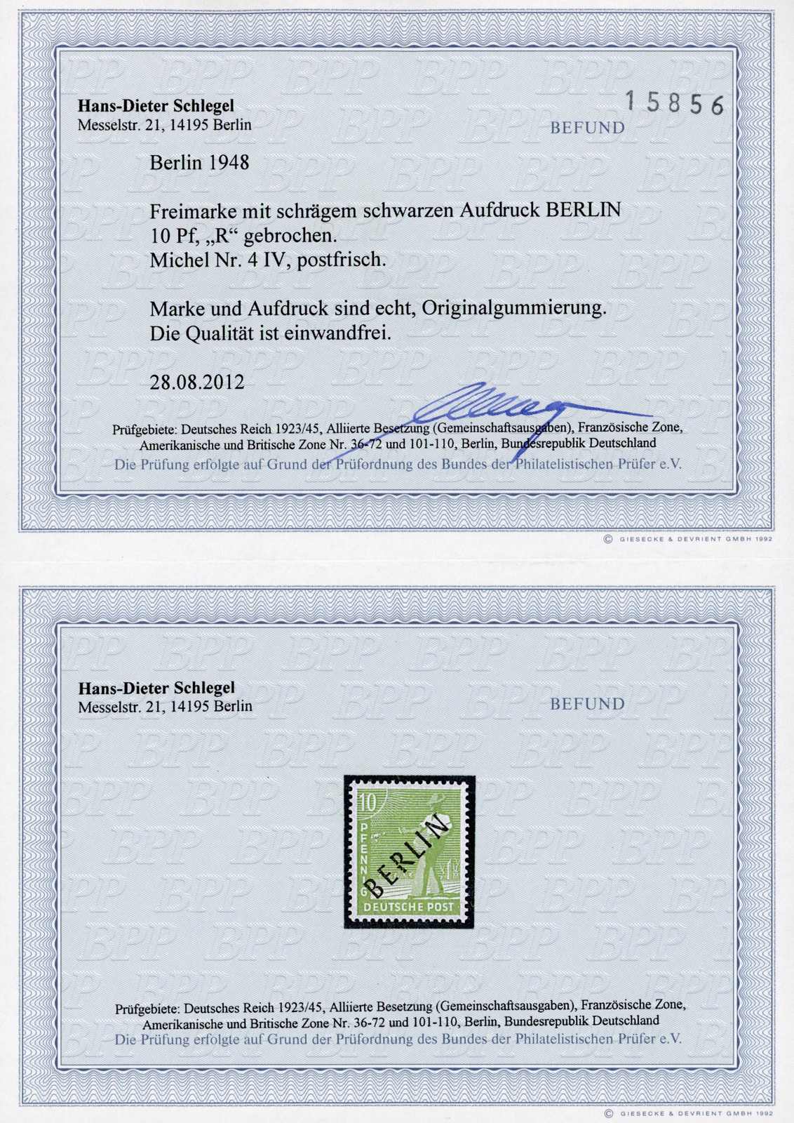 BERLIN AUFDRUCKFEHLER: 1948, 6 Werte Schwarzaufdruck mit dem Aufdruckfehler IV "R gebrochen" gestempelt, dabei 6, 10, 15, 16, 20 und 40 Pfg., einwandfrei, sign. oder Fotobefund/Kurzbefund Schlegel BPP (Image) (imagea)