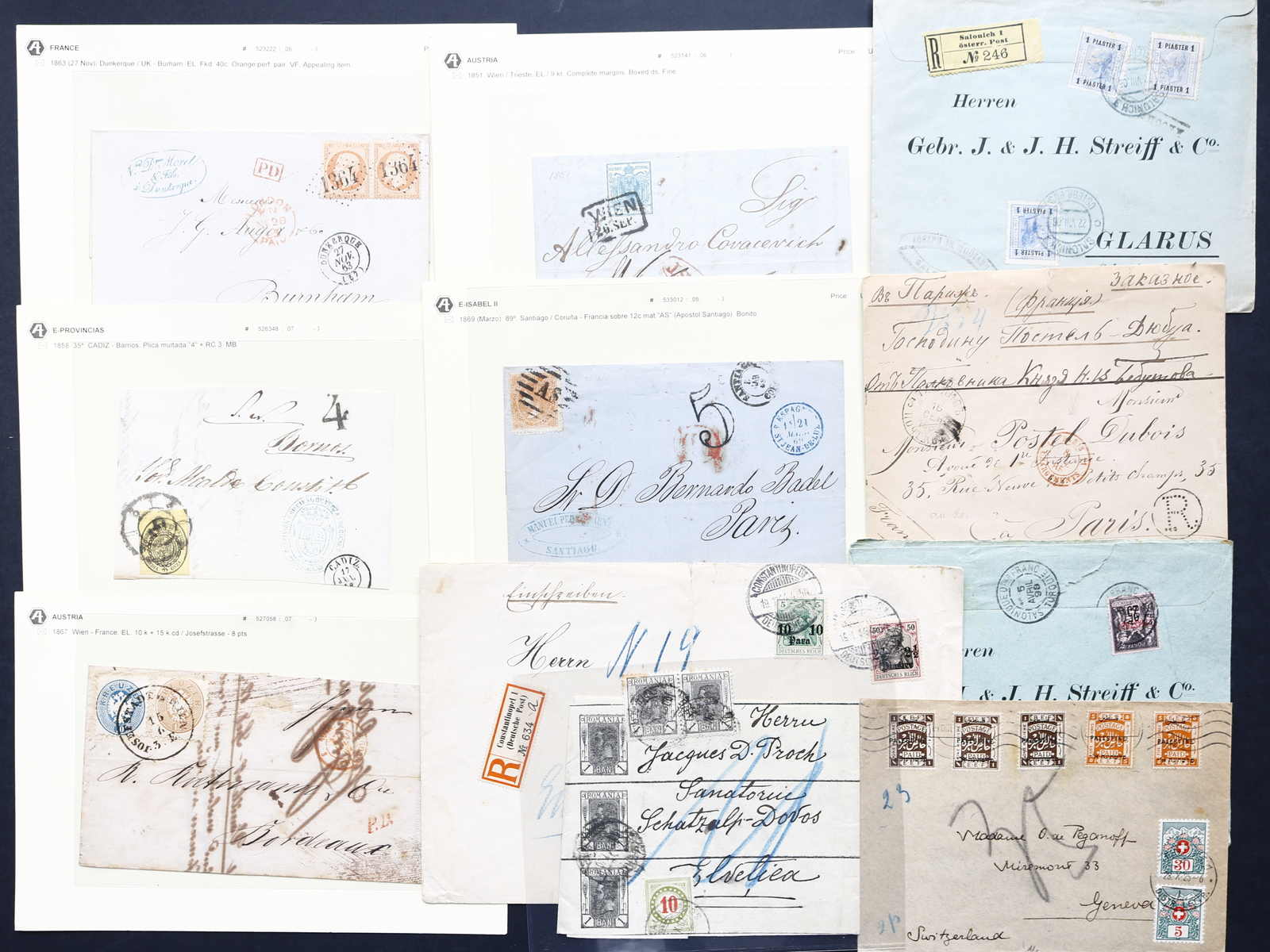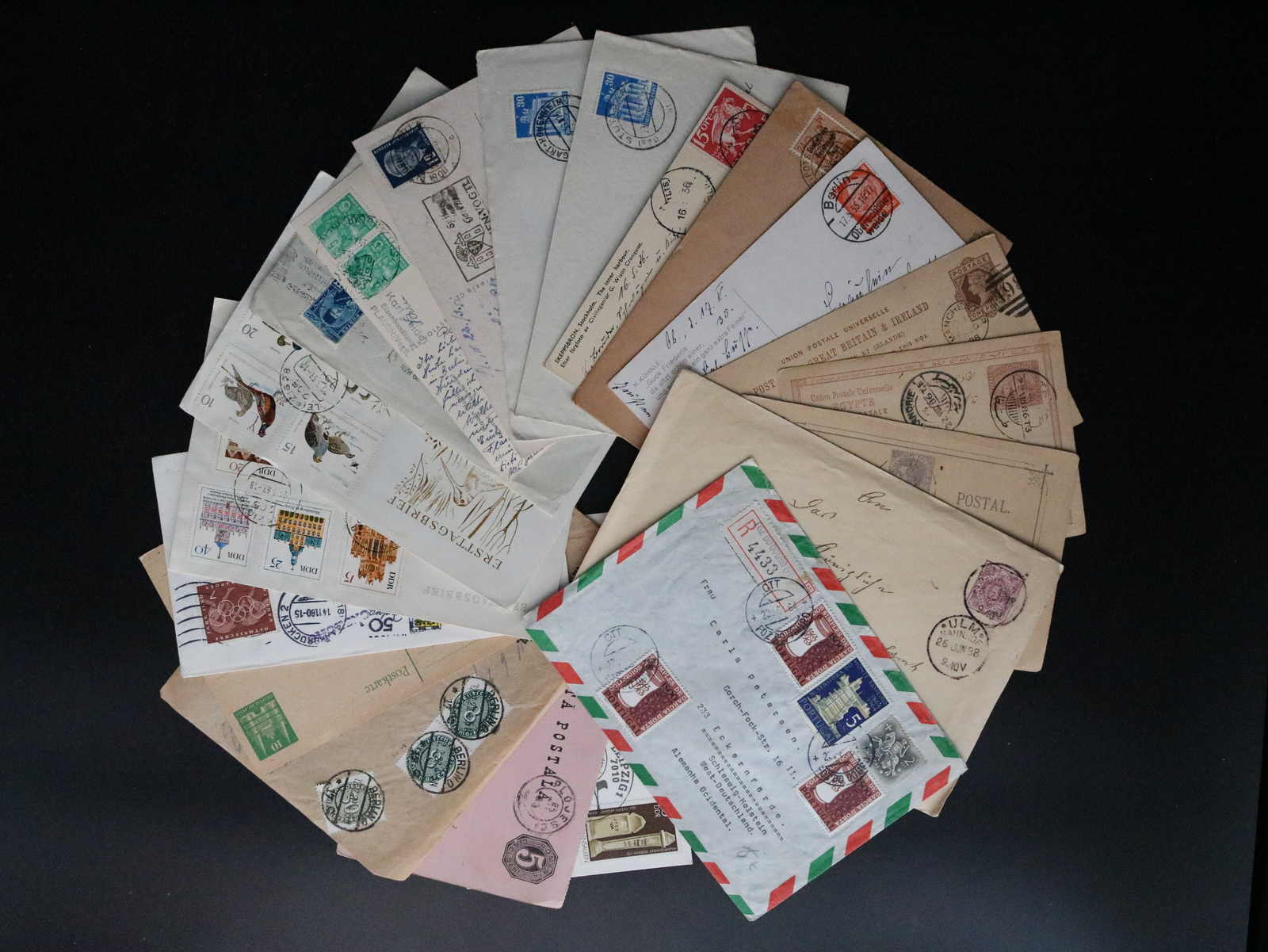 3513 Brief imageBELEGE ALLE WELT: interessanter Posten von ca. 90 Belegen aus aller Welt mit besseren Stücken, dabei u.a. R-Briefe Deutsche Auslandspostämter, Helgoland und weiteres mehr, auch etwas Vorphila, übliche etwas unterschiedliche Sammlungsqualität, bitte besichtigen (Image) (imagea) (imageb) (imagec) (imaged) (imagee)