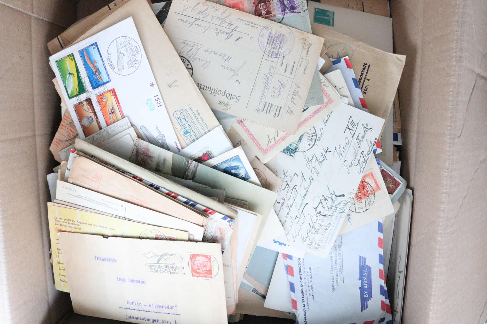3509 Brief imageALLE WELT: 1870/1995, umfangreicher Posten Briefe und Ganzsachen, dabei Deutschland vor und nach 1945, Ost- und Westeuropa mit Skandinavien, Baltikum, Russland/SU und Übersee mit Japan, Thailand, Ägypten und etwas Mexico, ges. ca. 1.600 bis 1.800 Belege, etwas unterschiedliche Qualiät (Image) (imagea) (imageb) (imagec)