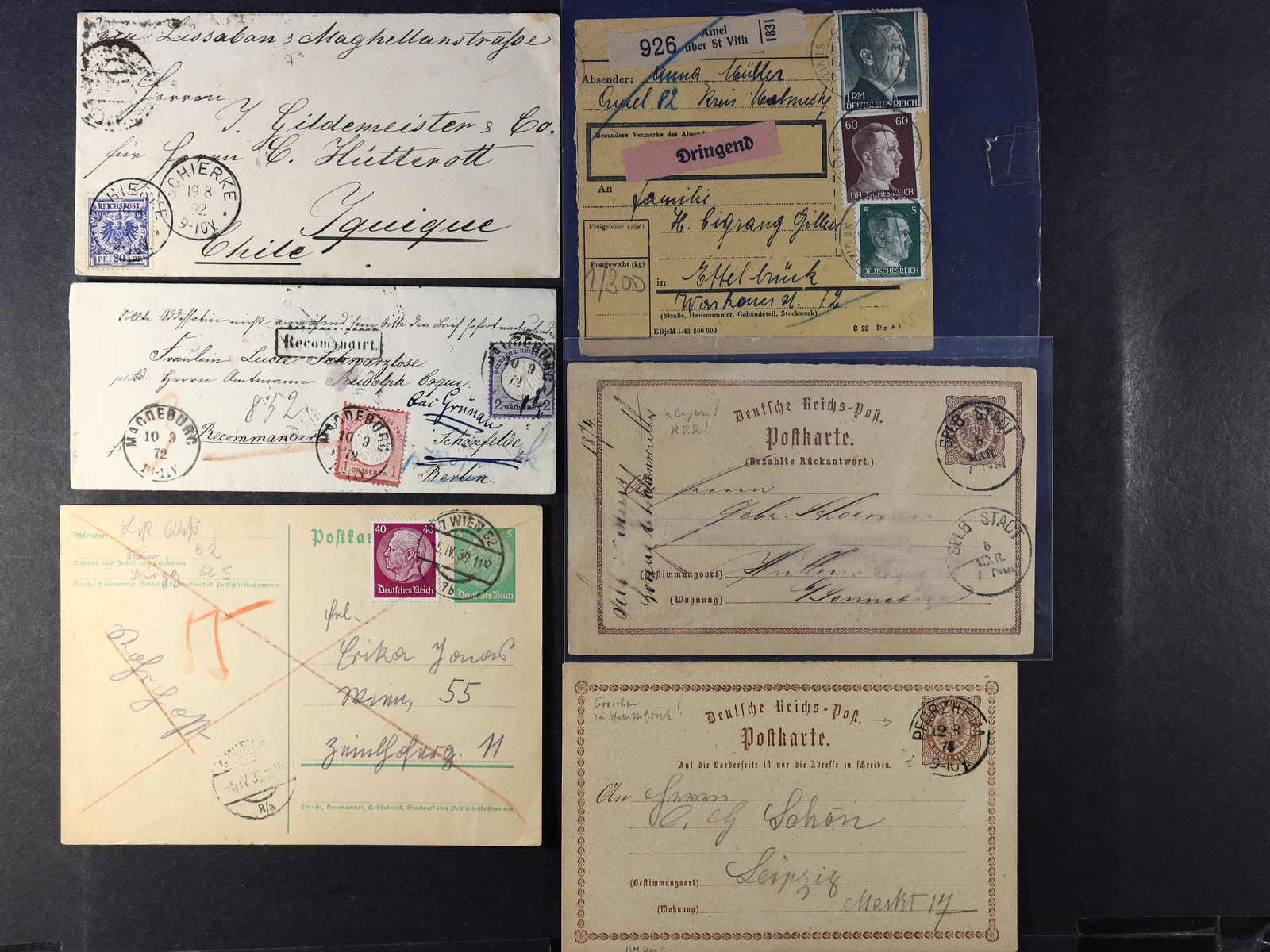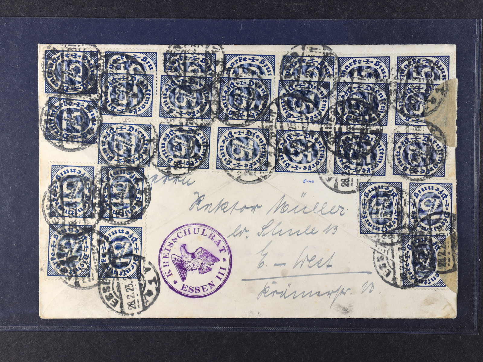 3517 Brief imageDEUTSCHES REICH/GEBIETE/ALLE WELT: 1890/1944 ca., Posten mit 36 Briefen und Karten meist Deutsches Reich, wenig Ausland, dabei bessere Frankaturen und interessante Verwendungen, u.a. Deutsches Reich Mi-Nr. 326 A (50) auf Dezemberbrief, 17mal 333 W u.a. auf Eil-R-Fernbrief, EF 334 AP, 27mal D 69 auf leicht überfrankiertem Ortsbrief, FDC´s 444/45 und 673-74 und Zusammendruck RL15.2 auf Brief, auch seltener Flugausfallstempel von 1919, vieles geprüft, aber auch Fragliches bzw. eine Inselpostfälschung dabei, interessante Mischung in unterschiedlicher Qualität (Image) (imagea) (imageb) (imagec)
