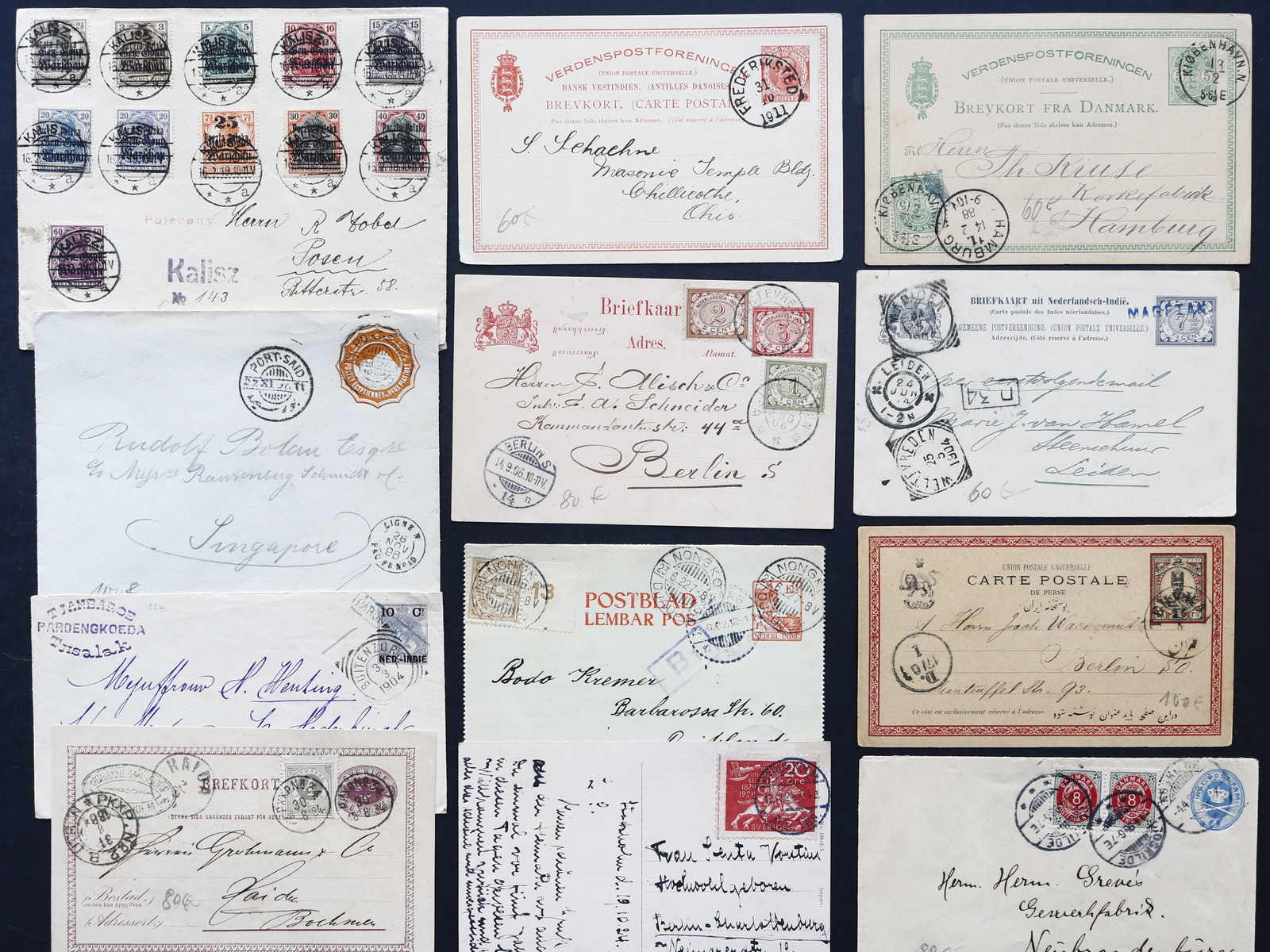 3512 Brief imageALLE WELT: 1860/1939, kl. Posten Briefe und Ganzsachen, teils mit Zusatzfrankatur, dabei Niederlande mit Niederl.-Indien, viel Skandinavien mit Dänemark und etwas Dänisch-Westindien, Finnland Ganzsachen, Schweden, etwas Baltische Staaten, Polen, Großbritannien, Italien, Schweiz und Griechenland mit einigen Frankaturen zu den Olympischen Spielen, ges. ca. 37 Belege, hoher Katalogwert, überwiegend gute Qualität (Image) (imagea) (imageb) (imagec)
