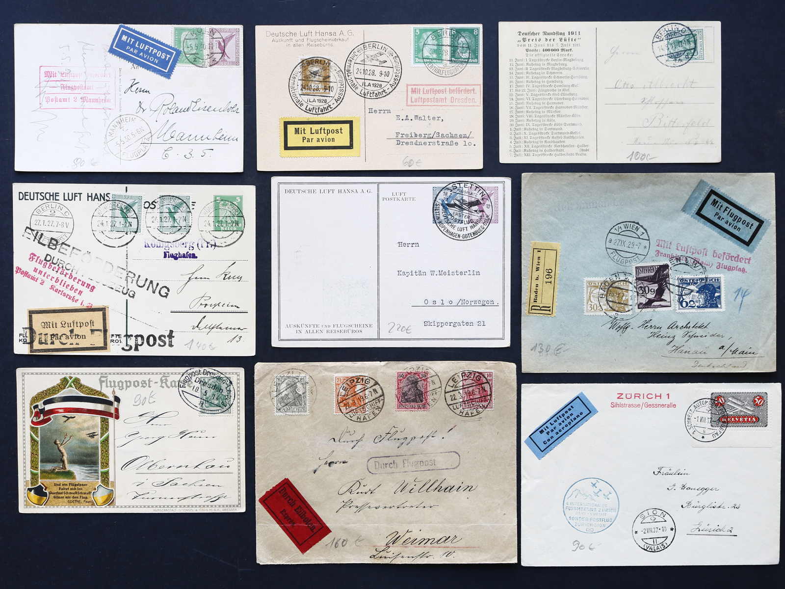 3518 Brief imageALLE WELT: 1911/37, FLUGPOST, kl. Posten Briefe/Ganzsachen, dabei Dt. Reich mit 3 Anlasskarten zu den verschiedenen Sonderflügen aus 1911/12, viel Luftpost aus 1919/33 mit div. Eröffnungsflügen, 2 DO-X Briefen und einem Danzigbrief, frankiert mit Mi-Nr. 207/11, dazu etwas Europa mit Flugpost der Schweiz, Österreich und ein Brief von Brasilien, ges. ca. 25 Belege, hoher Katalogwert, überwiegend gute Qualität (Image) (imagea) (imageb) (imagec) (imaged)