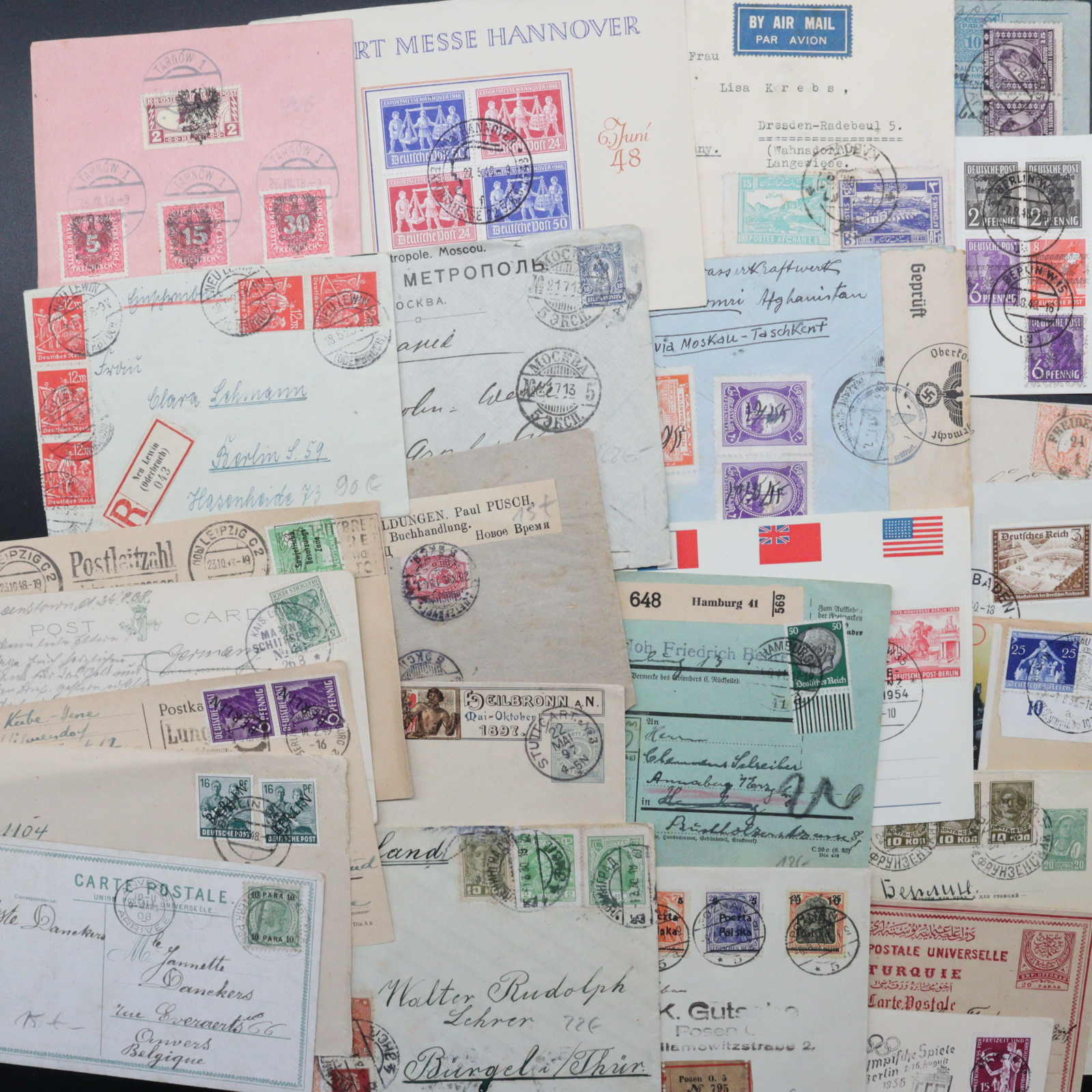 3536 Brief imageALLE WELT: 1860/1960, umfangreicher Posten Briefe und Ganzsachen, dabei Deutschland mit etwas AD, bessere Frankaturen von III. Reich, etwas Bes. II. WK. und Abstimmungsgebiete, SBZ mit einer Schwärzung und 10fach-Frankatur, Bizone und Bund mit guten Bedarfsbelegen, etwas Europa mit Paketkarten von Ungarn, Russland/SU mit gebr. Ganzsachen, Postanweisungen, Türkei mit einer gebr. Doppelpostkarte aus 1887 und etwas Übersee mit USA, vielseitiger Posten, bitte besichtigen (Image) (imagea)
