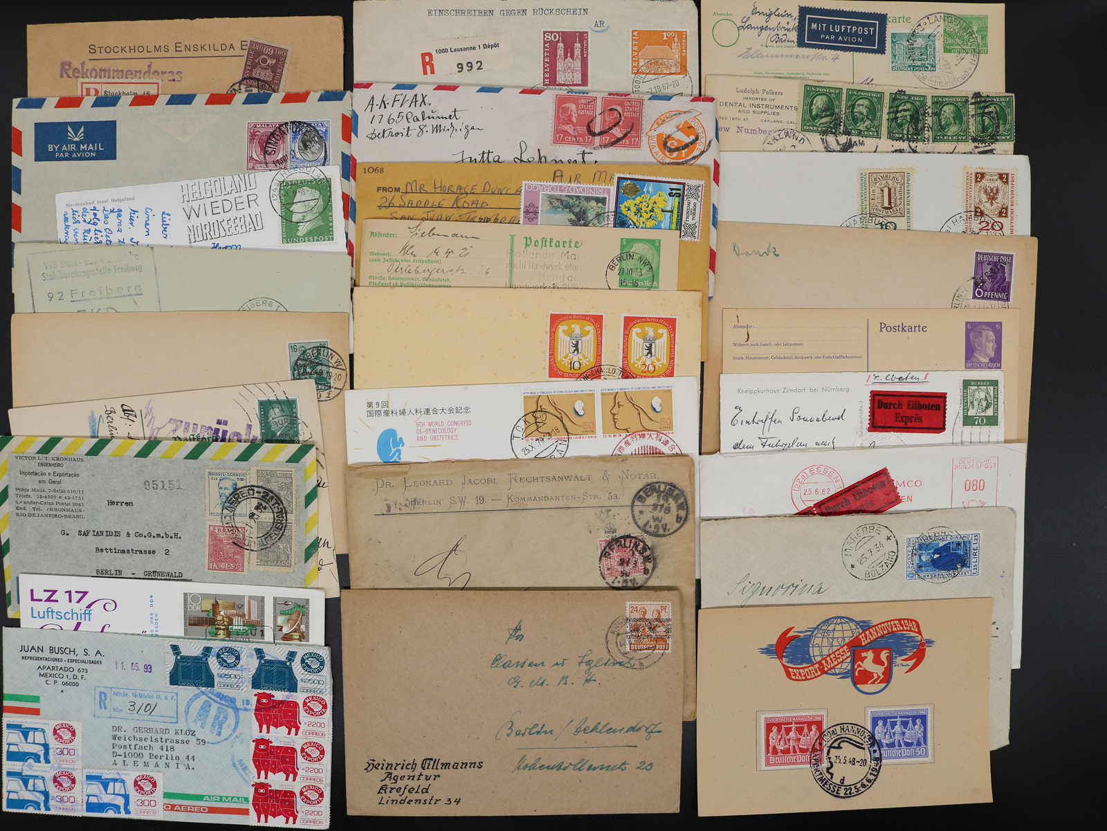 3537 Brief imageALLE WELT: 1875/1986, umfangreicher Posten Briefe und Ganzsachen, dabei Deutschland vor und nach 1945 mit viel Material von Bund, Berlin und DDR, dazu Europa mit Skandinavien, Russland/SU und etwas Westeuropa, Übersee mit Ägypten und Japan, von letzteren meist modernes Material, ges. ca. 1.500 bis 1.600 Belege, etwas unterschiedliche Qualität (Image) (imagea) (imageb) (imagec)