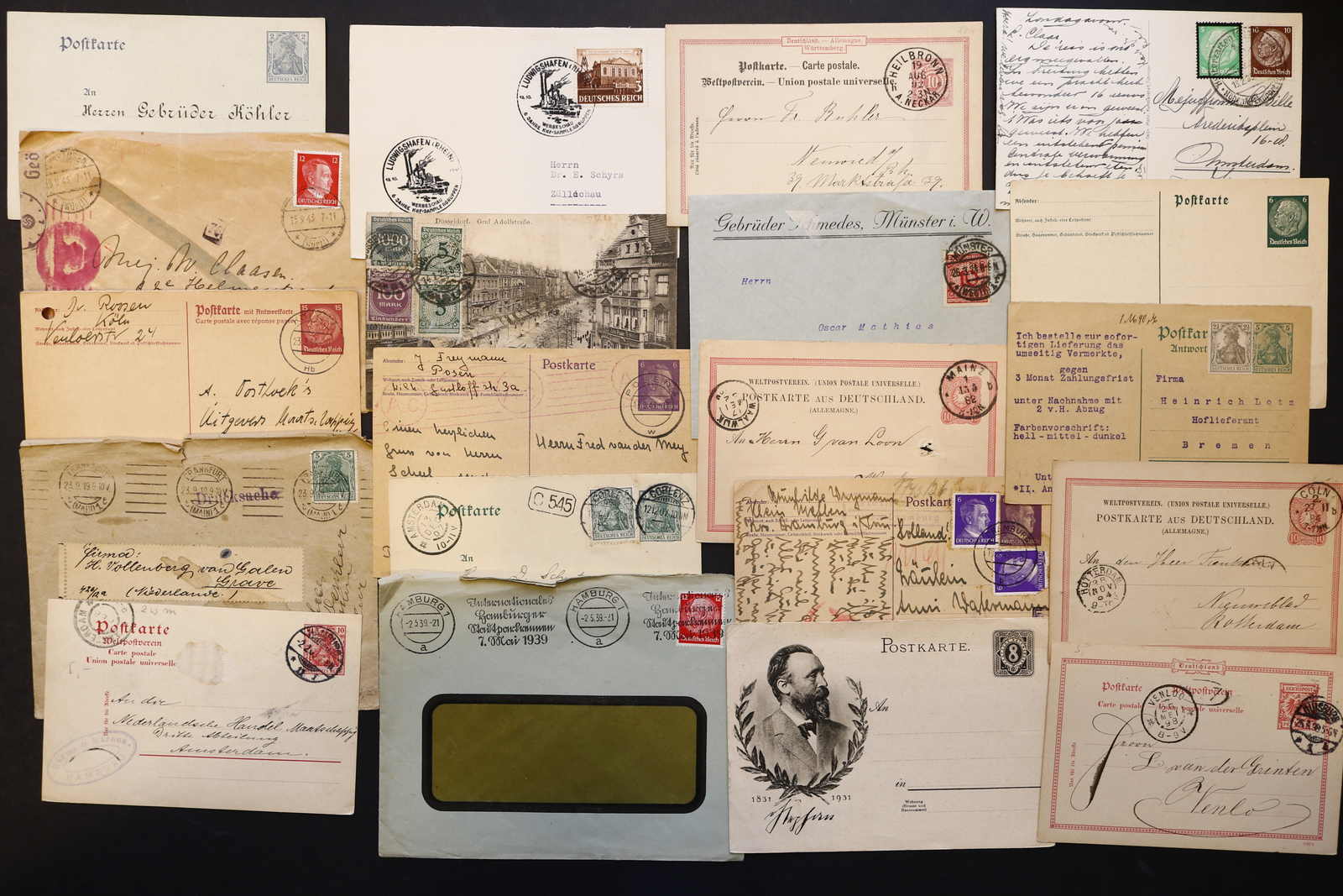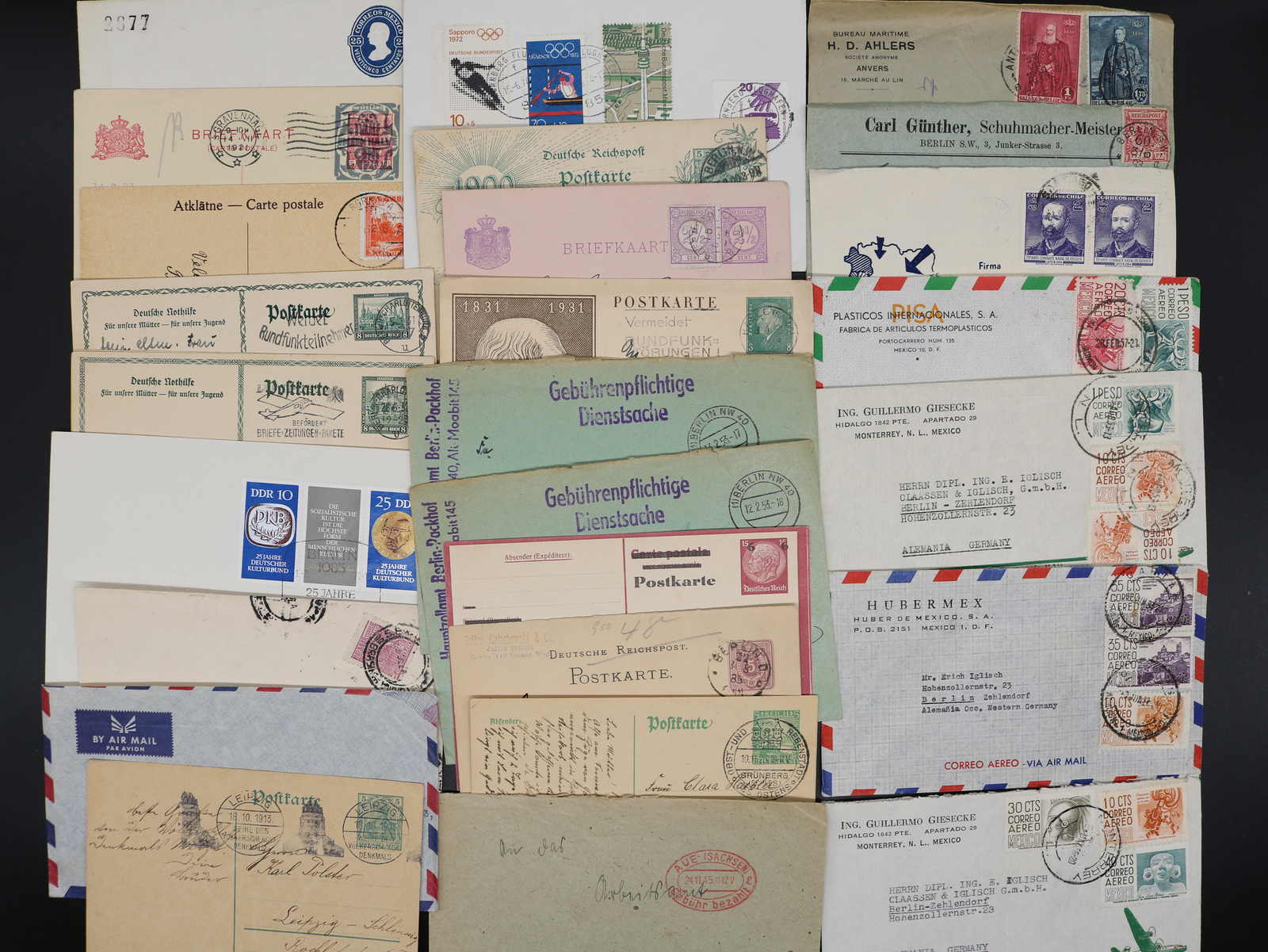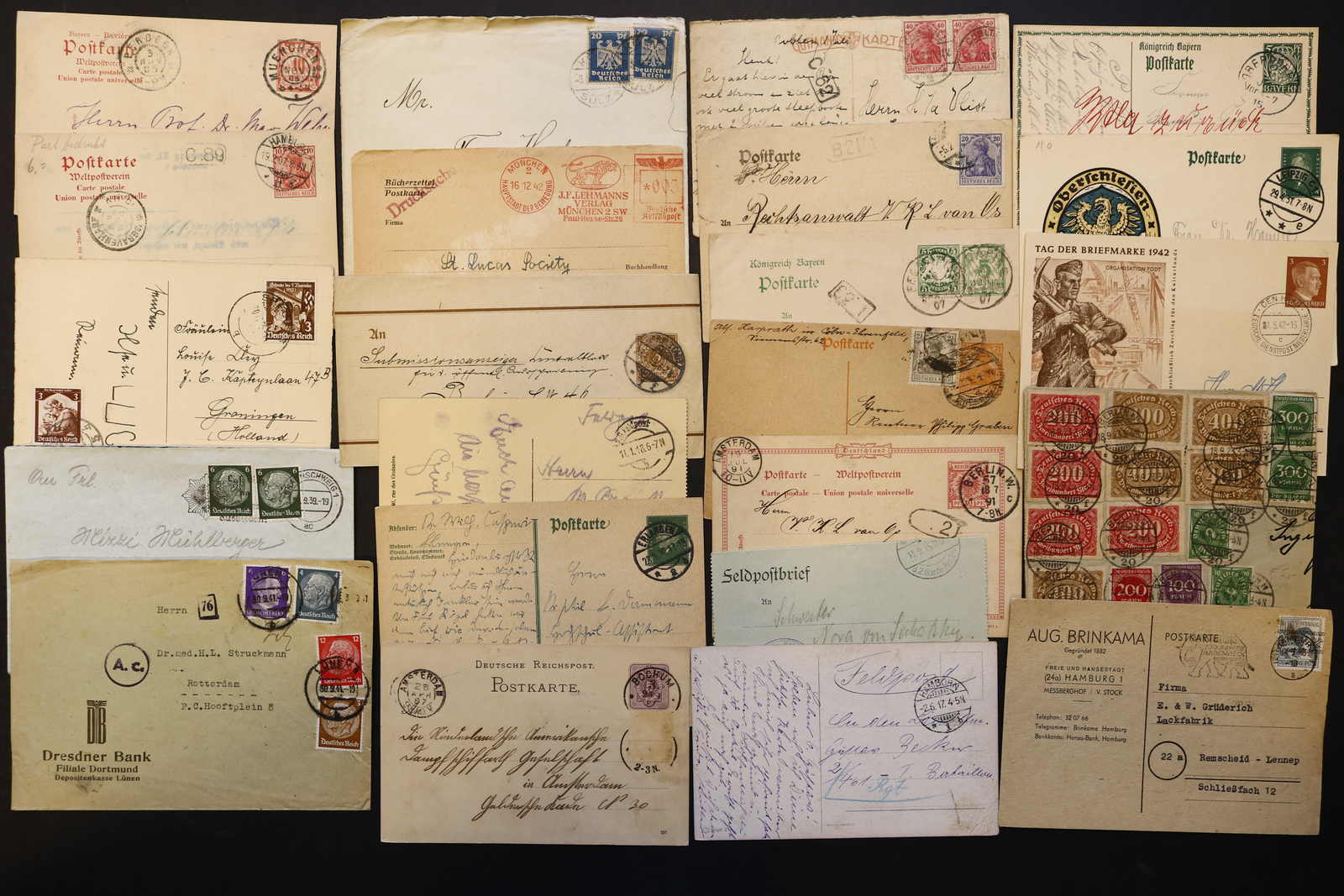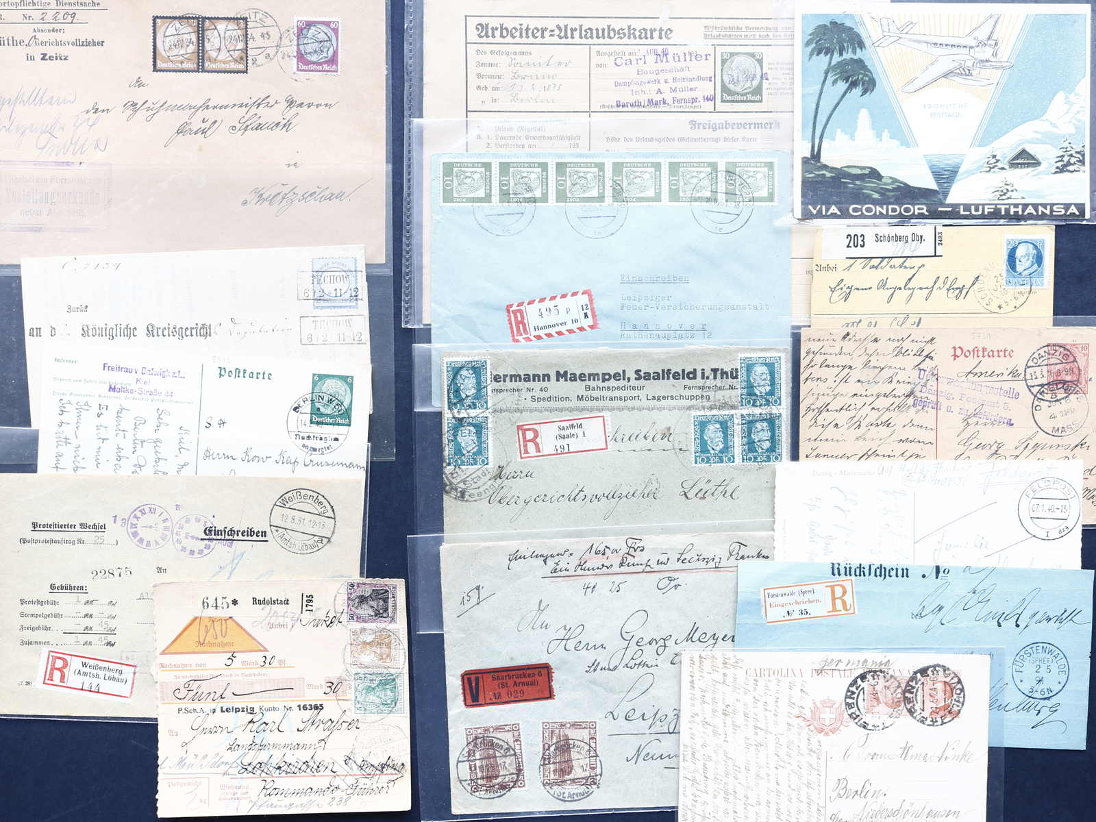 3540 Brief imageDEUTSCHLAND/ALLE WELT: 1872/1975, über 80 Briefe und Karte meist aus Deutschland, dabei Ganzsachen, div. Zusatzleistungen, Nachträglich entwertet, Freistempler, Reklamekarten, Paketkarten, Arbeiter-Urlaubskarte mit EF 30 Pfg. Hindenburg, Danzig etc., interessante Mischung in guter Qualität, dazu Büchlein "Alt-Leipziger Gaststätten auf Postkarten" von 1990 (Image) (imagea) (imageb) (imagec) (imaged) (imagee)