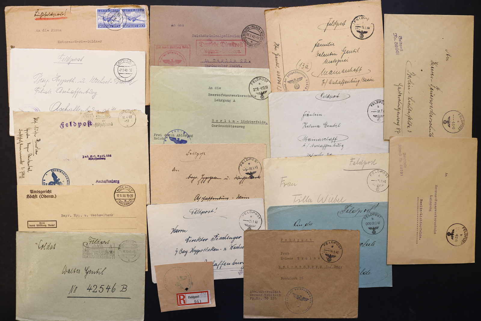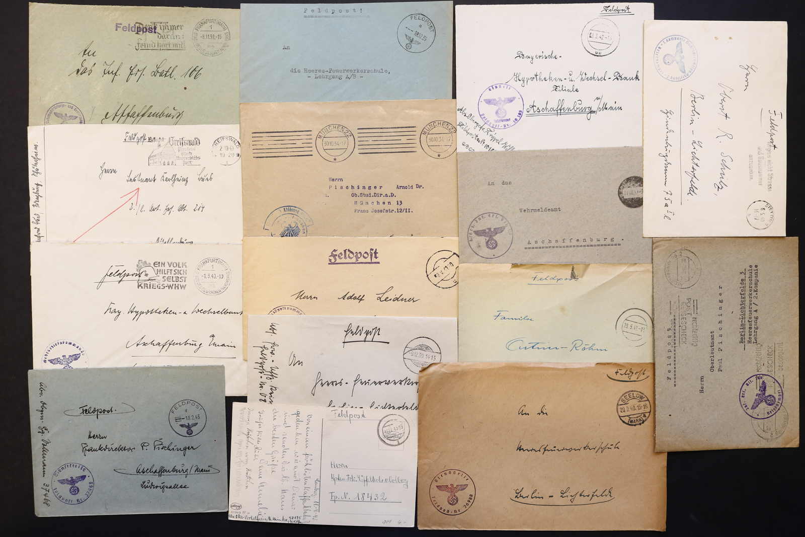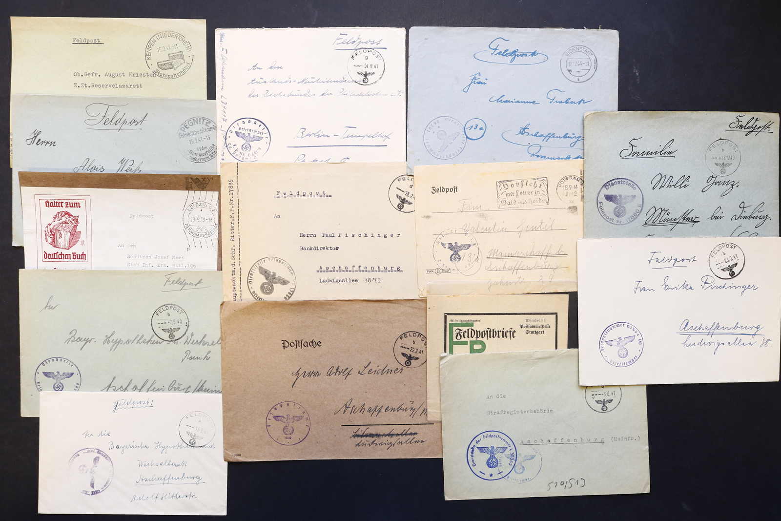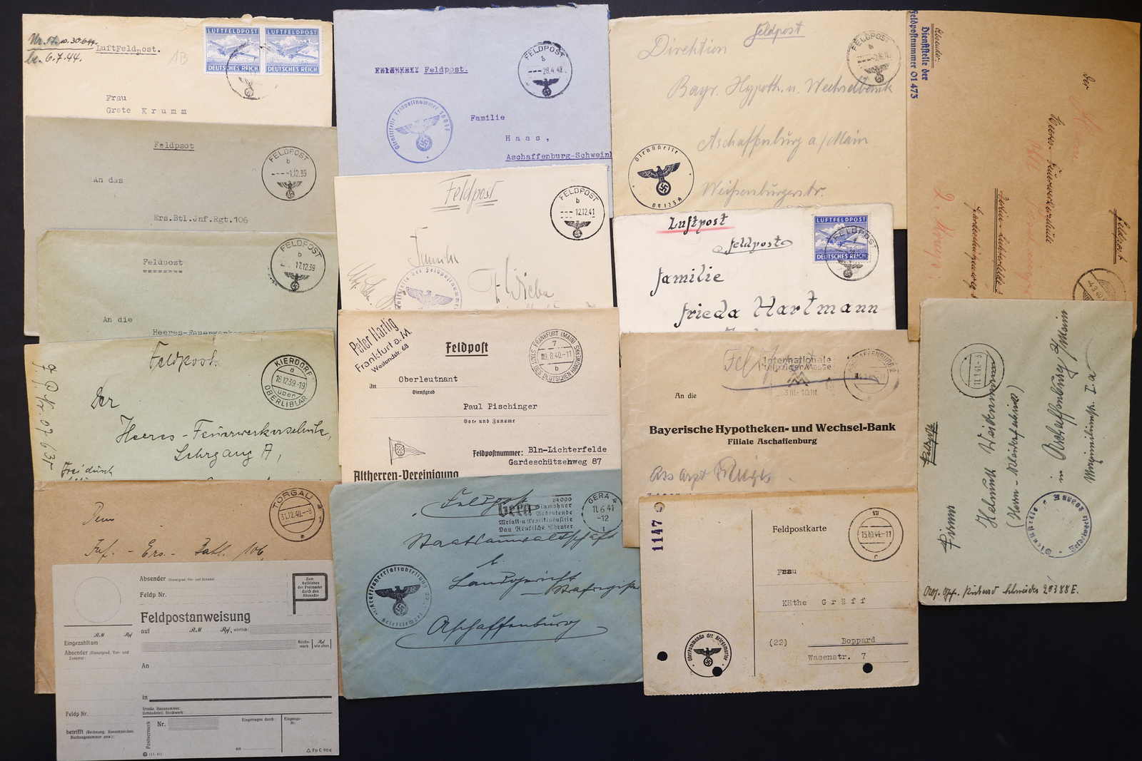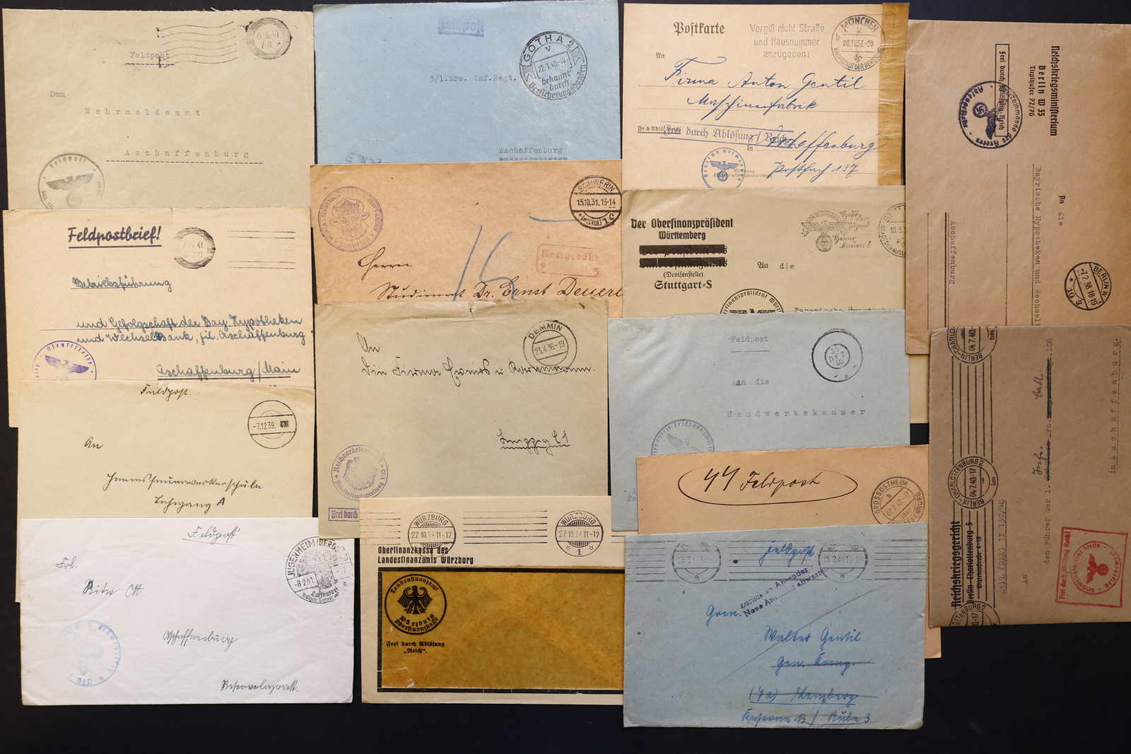 3522 Brief imageDEUTSCHLAND: 1840/1944 ca., Karton mit über 200 Briefen und Karten ab Vorphila, meist Feldpost II. Weltkrieg, dabei viele stumme oder aptierte Stempel, Päckchenadresse mit 20 Pfg.-Porto, Kriegsgefangenenpost und Postkarte Festung Nazaire vom 15.10.1944 (gelocht), interessante Mischung, etwas unterschiedliche Qualität (Image) (imagea) (imageb) (imagec) (imaged) (imagee) (imagef) (imageg) (imageh) (imagei) (imagej) (imagek) (imagel) (imagem)
