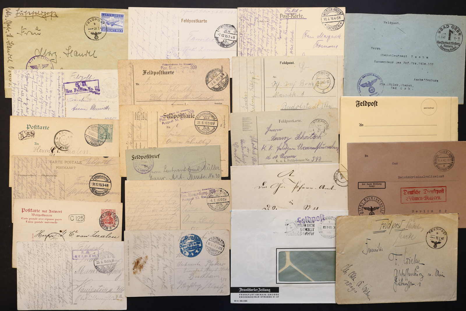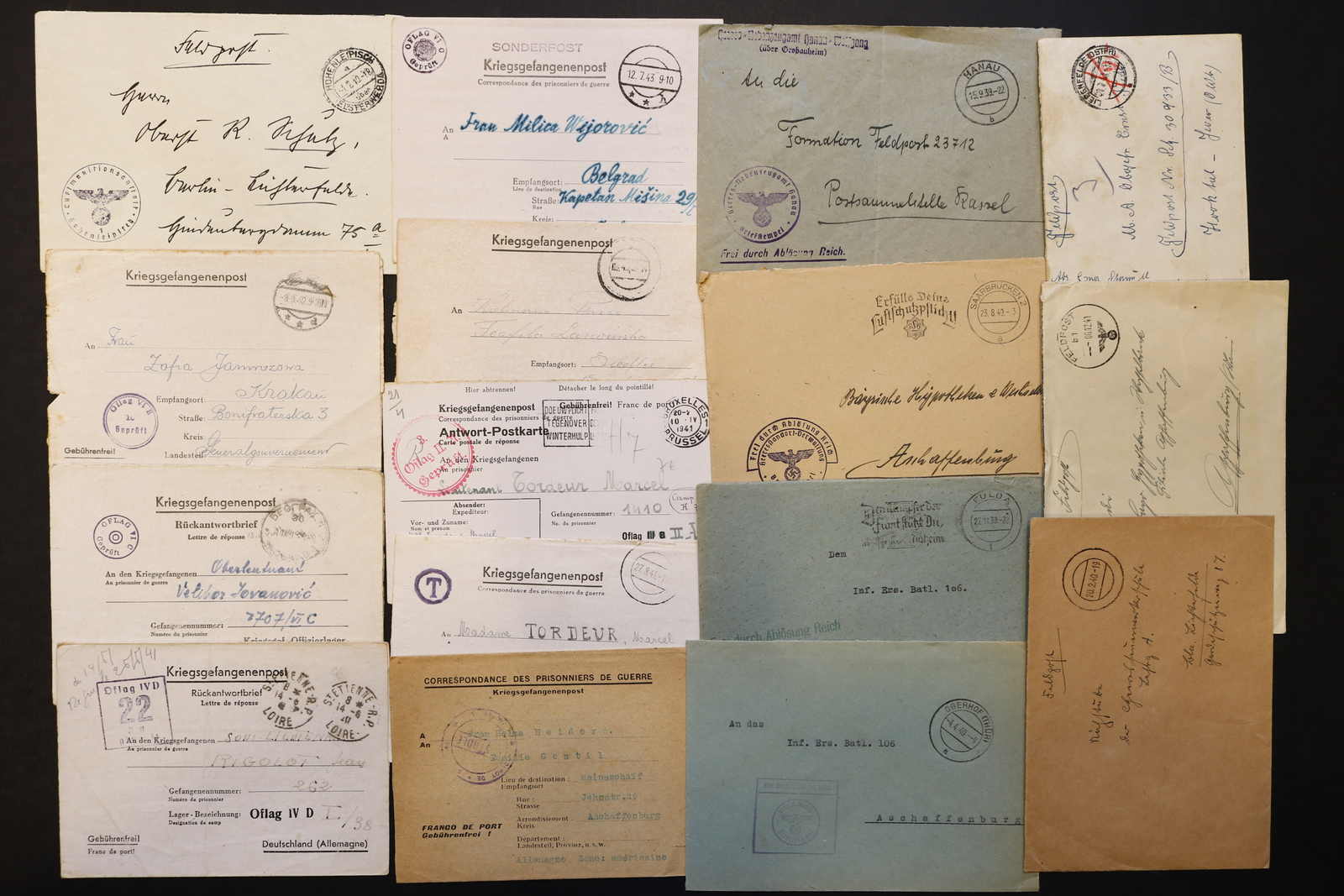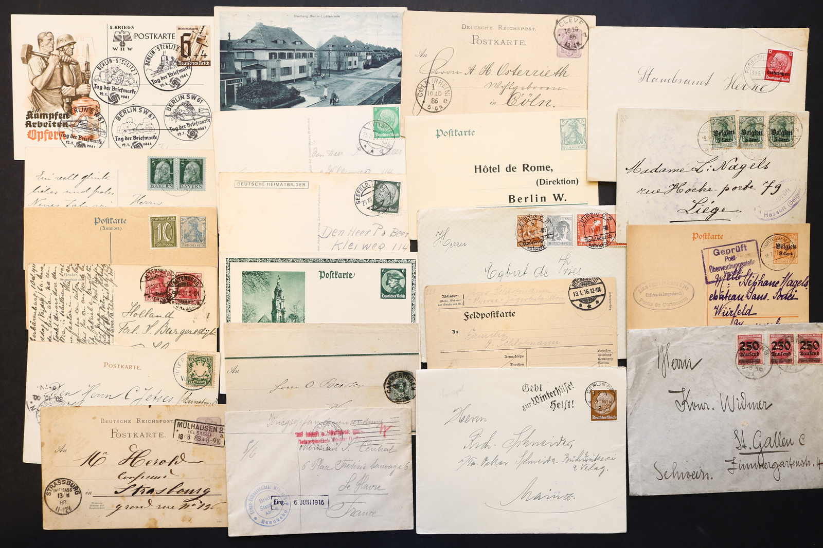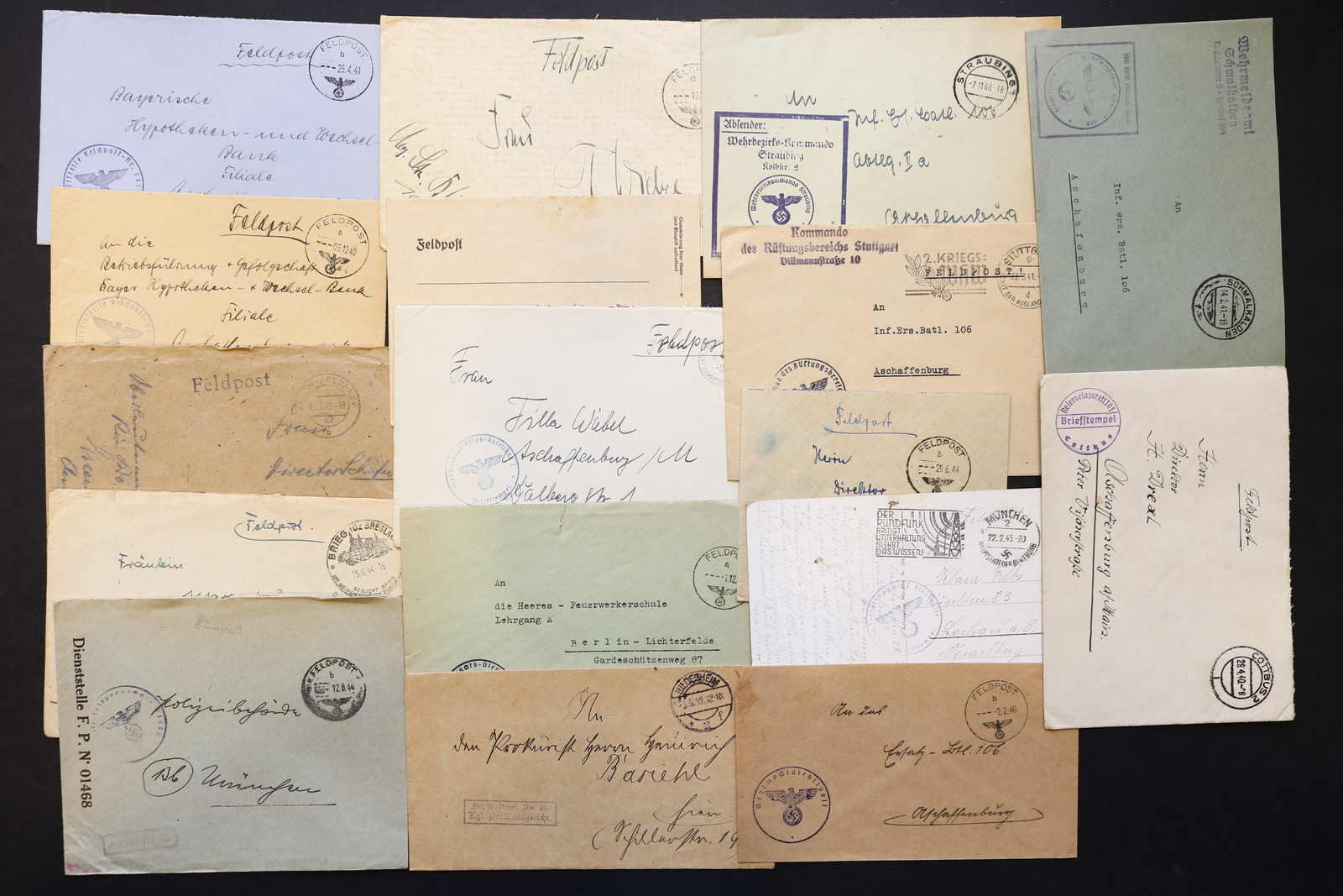 3522 Brief imageDEUTSCHLAND: 1840/1944 ca., Karton mit über 200 Briefen und Karten ab Vorphila, meist Feldpost II. Weltkrieg, dabei viele stumme oder aptierte Stempel, Päckchenadresse mit 20 Pfg.-Porto, Kriegsgefangenenpost und Postkarte Festung Nazaire vom 15.10.1944 (gelocht), interessante Mischung, etwas unterschiedliche Qualität (Image) (imagea) (imageb) (imagec) (imaged) (imagee) (imagef) (imageg) (imageh) (imagei) (imagej) (imagek) (imagel) (imagem)