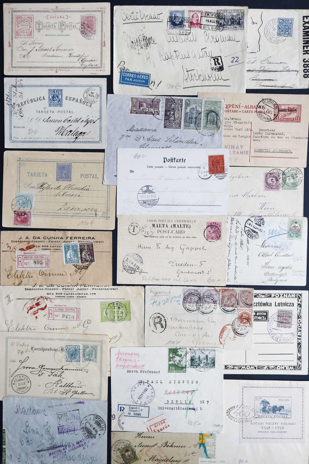 3527 Brief imageEUROPA: 1870/1958, gemischter Posten Briefe und Ganzsachen, überwiegend gebr., etwas ungebr., dabei Österreich mit 2 gebr. Paketbegleitadressen als Stempelmarken-GA mit zufrankierten Freimarken und Luftpost der 20er Jahre, Polen mit Luftpost der 30er Jahre und Nachportobelegen, Frankreich mit 2 ungebr. Ballon-Faltbrief-Vordrucken aus 1870 und 2 ungebr.Telegrammvordrucken, etwas Südosteuropa mit Türkei, GB mit etwas Auslandspost, Spanien mit frühen gebr. Ganzsachen-Postkarten und Portugal mit Einschreibbriefen, ges. ca. 46 Belege, hoher Katalogwert, überwiegend gute Qualität (Image) (imagea) (imageb) (imagec)