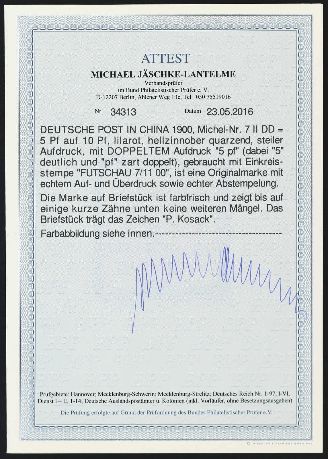 fallen angesichts der Seltenheit des doppelten Aufdrucks kaum ins Gewicht, signiert Kosack, Fotoattest Jäschke-Lantelme BPP (ME 15.000,-) (Image) (imagea)