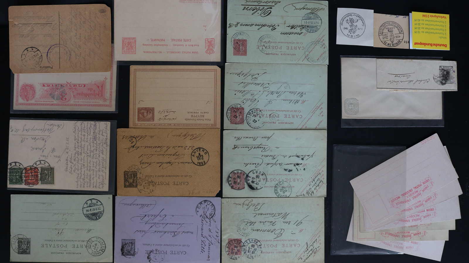 ALLE WELT: 1880/1980 ca., Karton mit meist Ganzsachen ungebraucht/wenig gebraucht, ca. 150 Stück, dabei u.a. Deutsches Reich, Italien, Frankreich inkl. Überseegebiete, Mittel- und Südamerika auch etwas frankierte Post sowie einige