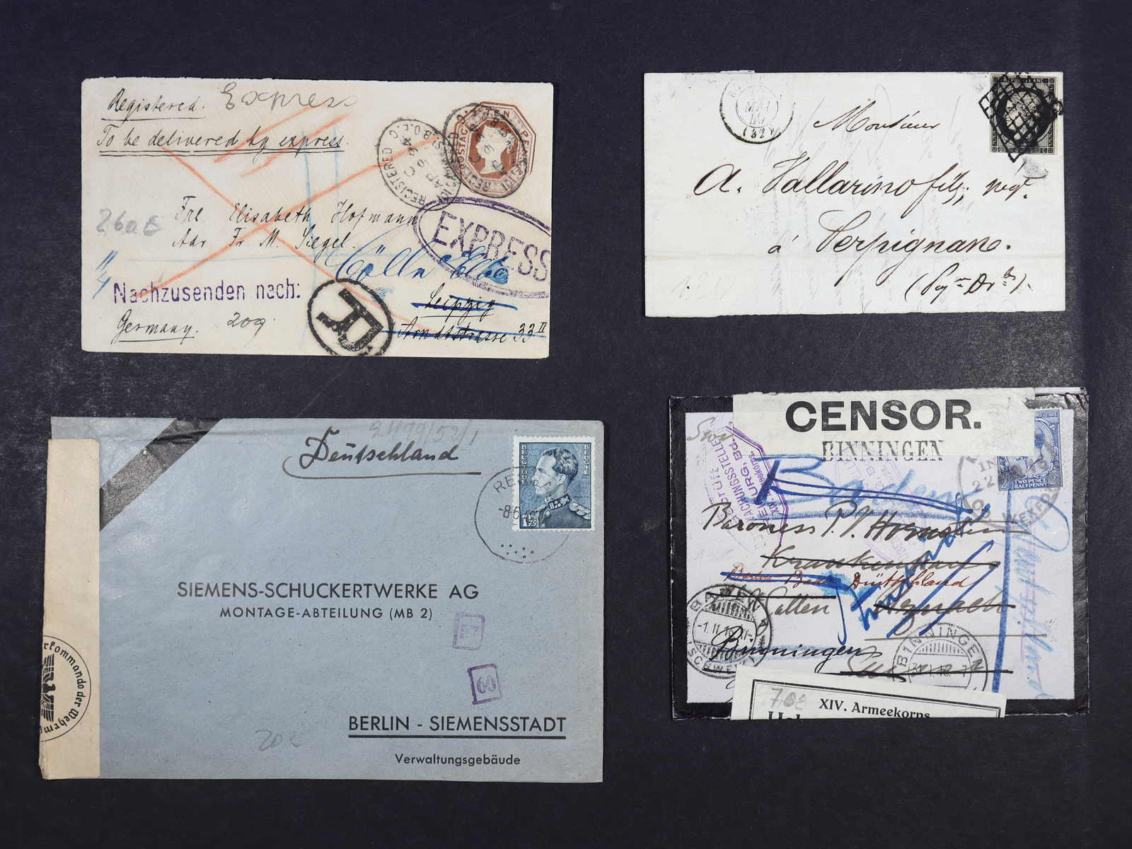 EUROPA: 1849/1940, kl. Posten Briefe/Ganzsachen, dabei Frankreich Mi-Nr. 3 auf Inlandsbrief aus 1849, Jugoslawien gebr. Kartenbr. K 6 II, Albanien Mi-Nr. 41/46 a. Satzbr. nach Deutschland und GB mit einem Zensurbrief und einer