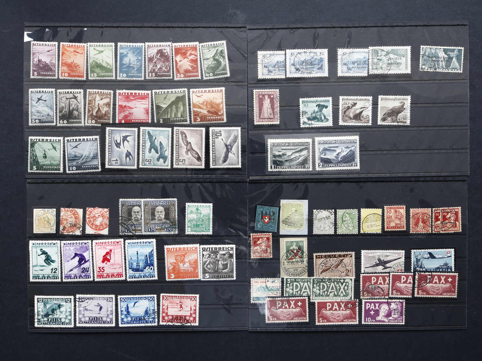 hohen Werten gest., Liechtenstein mit Mi-Nr. 114/15 postfr. und Nr. 197 gest. und Österreich ab Mi-Nr. 1 gest., 551/54 gest., 585/87 postfr., 588/612 postfr. und 984/87 postfr., auf gr. Steckkarten, hoher Katalogwert, überwiegend saubere Qualität (Image)