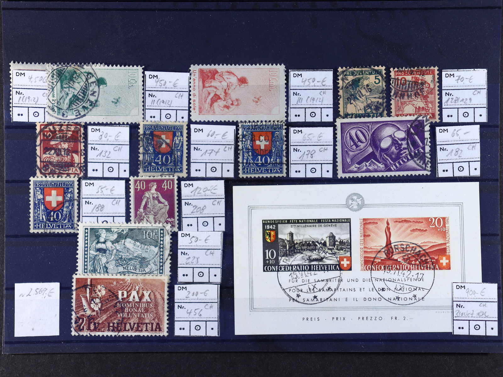 EUROPA: 1850/1990, gemischter Bestand Europa, dabei Sammlung Schweiz 1854/1971, überwiegend gest. ab Mitte der 60er Jahre mit etwas Nominale, kleiner Dublettenbestand Großbritannien, etwas Russland/SU mit russ. Nebengebieten,