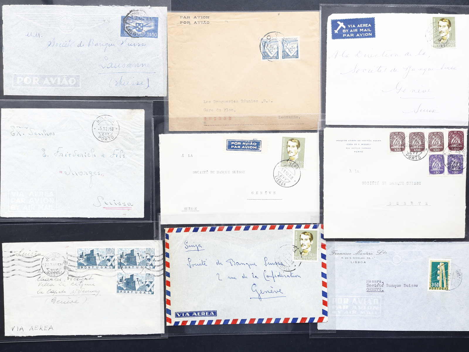 PORTUGAL: 1863/1959, Lot mit 46 Briefen, neben 3 Briefen aus 1863-72 ist eine Bankkorrespondenz aus den 50er Jahren enthalten, dabei div. Flugpost- und Sondermarkenfrankaturen, auch Einschreiben, meist gute Qualität (Image) (imagea)