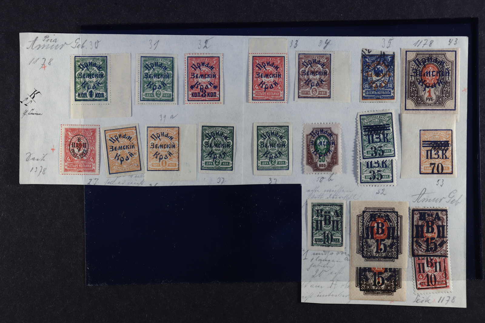 RUSSLAND ARMUR-GEBIET: 1921/22, kl. Posten, überwiegend ungebr. , wenig gest., aus dem Bestand des Prüfers Richter, aus Mi-Nr. 4 bis 47/48, dabei einige Werte sign. Richter, einige als Aufdruckfälschungen gekennzeichnet, auf altem