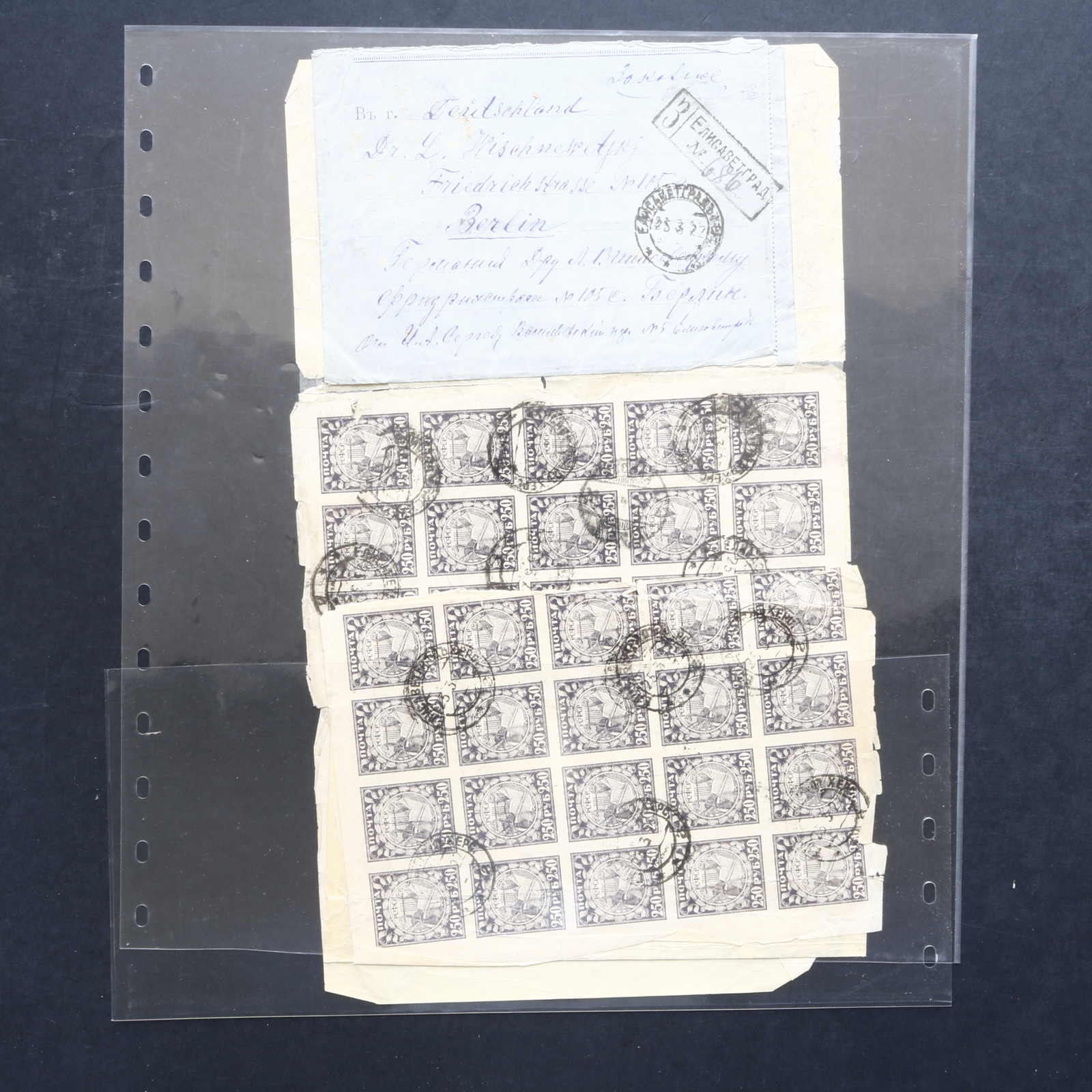 ein Brief mit einer portogerechten Massenfrankatur von 120 Werten der Mi-Nr. 158 auf Einschreibbrief vom 25.3.22 nach Berlin (etwas Beförderungsspuren) und ein Vorphilabrief aus Warschau 1860 nach Paris, aus der Rothschild-Korrespondenz,
