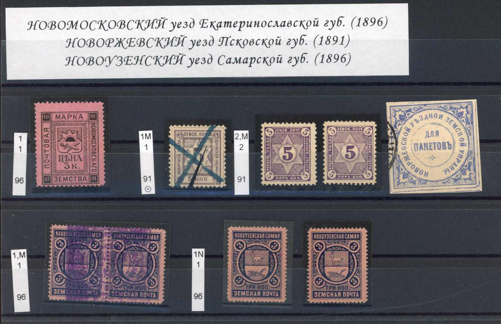 ZEMSTVO: 1891/96, kl. gemischter Posten, ungebr. oder gest., dabei Novomoscovsk Nr. 1 ungebr., Novorzhev Nr. 1 mit Federzug entwertet, 2 ungebr. Werte der Nr. 2 und dazu eine gebr. Paketmarke ohne Nennwert, den Abschluss macht