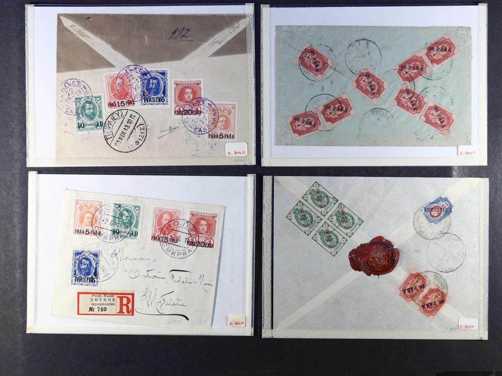 RUSSIAN LEVANT OFFICE: 1904/14, registered covers lot of 4 items, two from Constantinople and others from Smyrna & Salonique offices with colourful frankings. (Image)