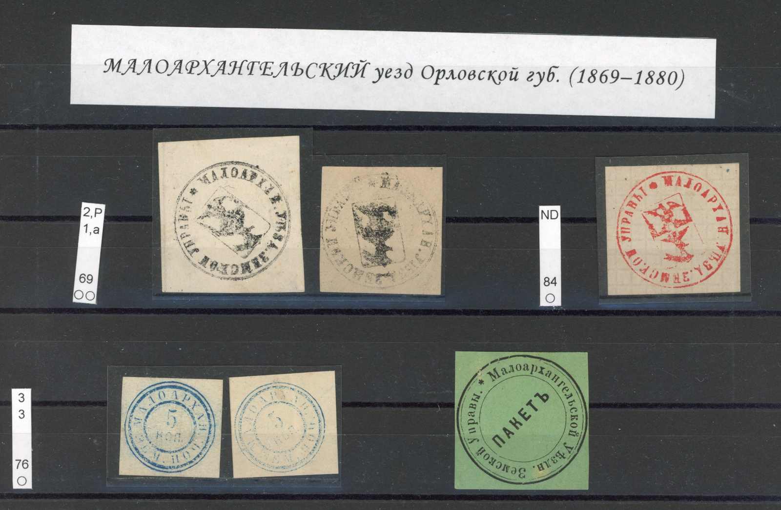 MALOARKHANGELSK: 1869/76, kl. ungebr. Sammlung, einige Werte auch ohne Gummi, dabei Nr. 1 a auf weißem Papier und im Neudruck in rot, Nr. 2 a auf gelblichem Papier, 2 Werte der Nr. 3 und eine Paketmarke ohne Nennwert, auf großer