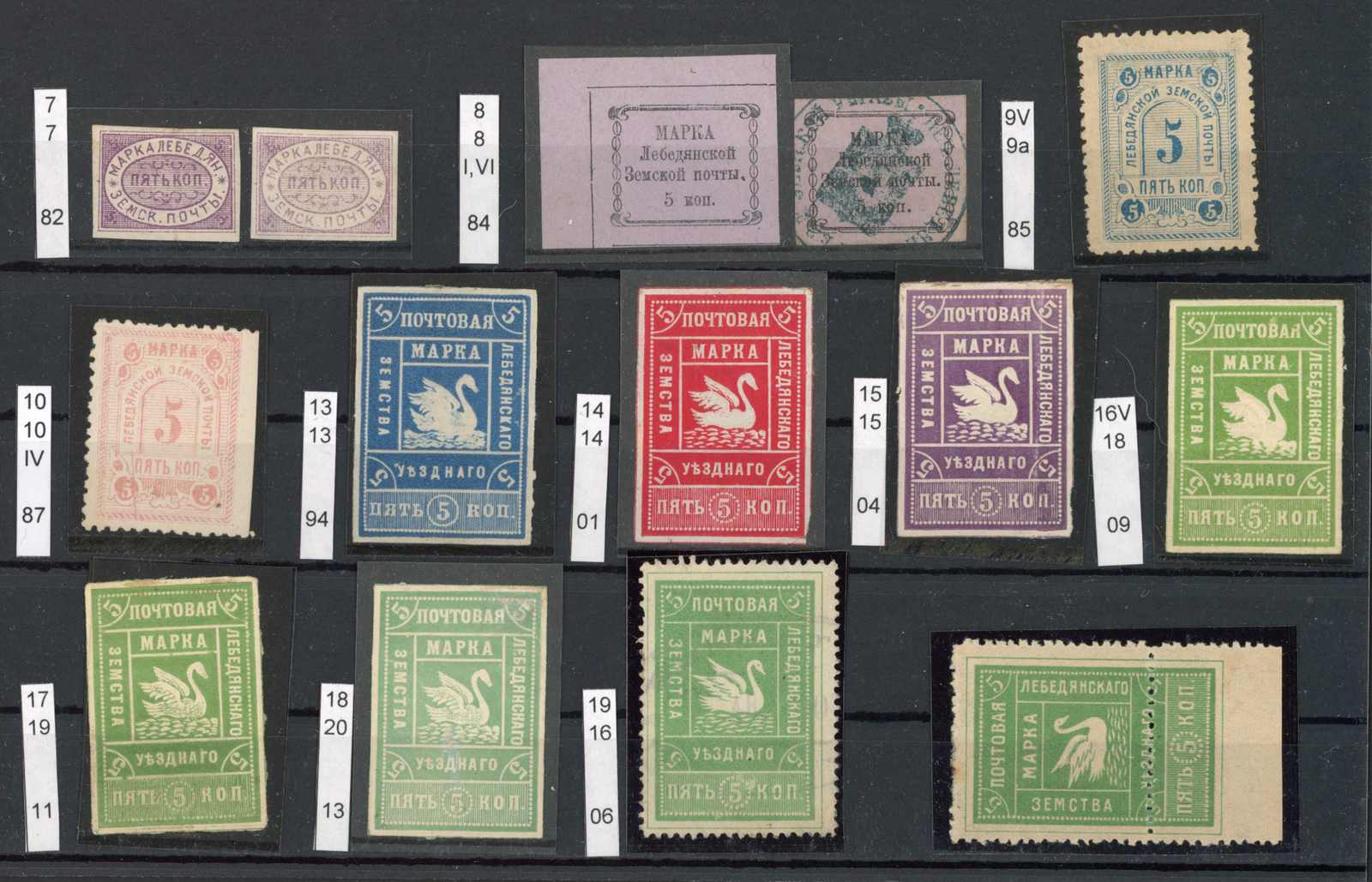 LEBEDIAN: 1882/1906, kl. gemischte Sammlung, überwiegend ungebr., ein Wert der Nr. 8 gest., ab Nr. 7 mit 2 Werten in verschiedenen Farbtönen, dazu 8 in beiden Erhaltungen, 9/10 und13/19, teils mehrfach in verschiedenen Typen