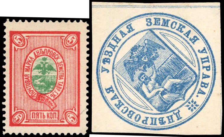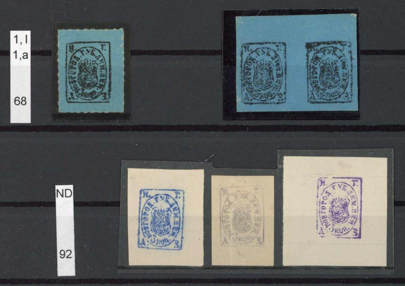 DEMYANSK: 1868/78, kleiner Posten ungebraucht, dabei Nr. 1 im waager. Paar geschnitten und Nr. 1 A als durchstochener Einzelwert, dazu 3 ungebr. sowie ein Nach- oder Neudruck der Nr. 1, saubere Qualität (Image)