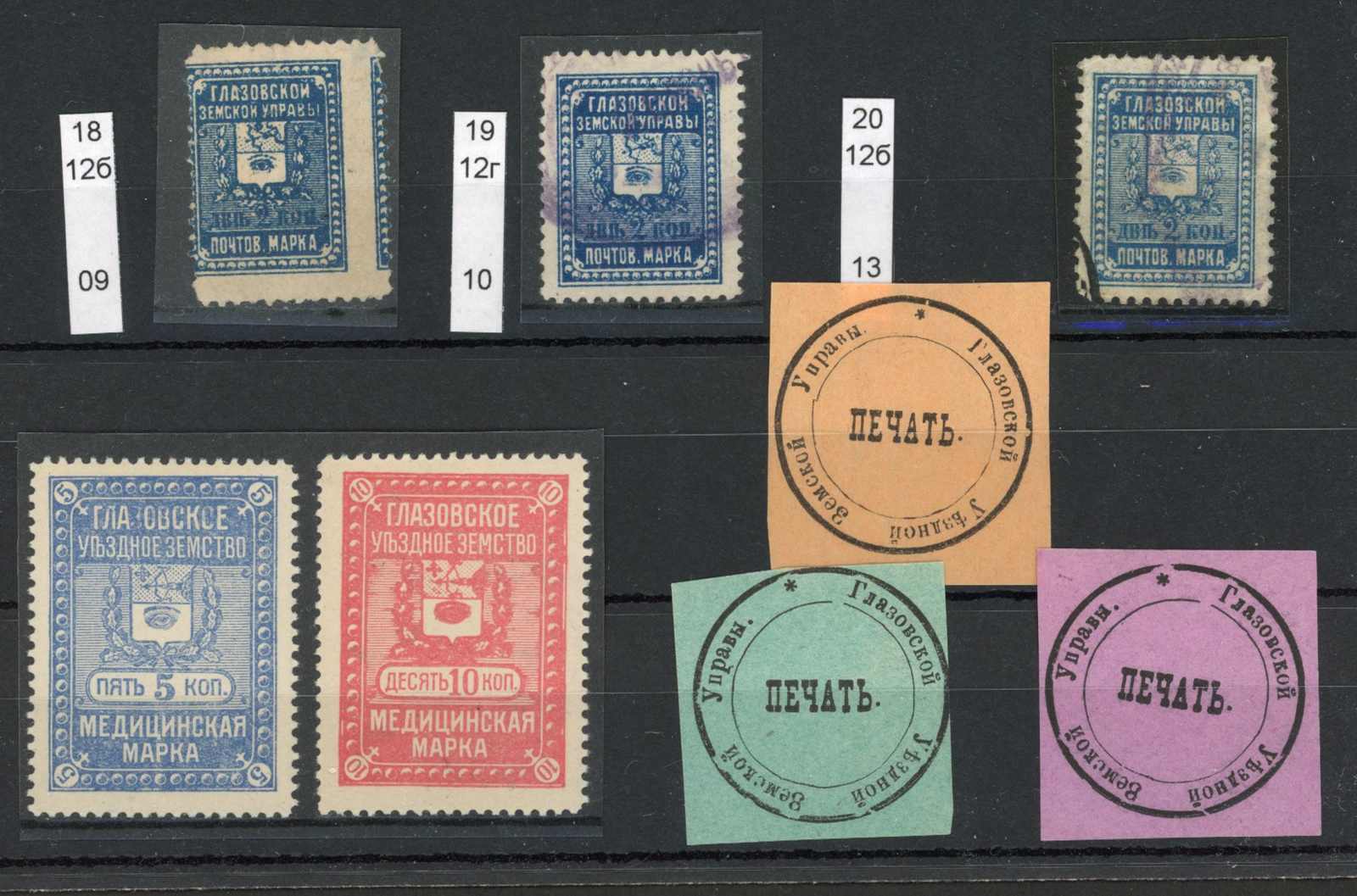 GLAZOV: 1898/1914, kl. gemischter Posten aus Nr. 18/20 und M1/M 2, teils gest. teils postfr., dazu 3 ungebr. Siegelmarken "Bezahlt." ohne Nennwert auf farbigem Papier, bitte besichtigen (Image)