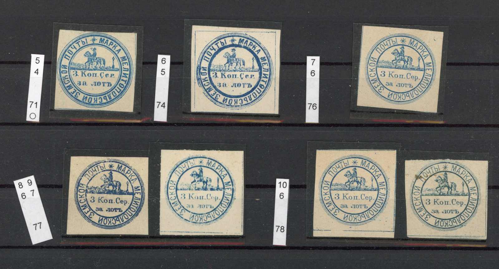 MELITOPOL: 1871/78, kl. gemischte Sammlung, überwiegend ungebr., ein Wert postfr. und ein Wert ohne Gummi, dabei Nr. 5, 6, 7, ungebr. 8 postfr., 9 ungebr. und 10 ungebr. und ein zweiter Wert ohne Gummi, ges. 7 farbfrische Werte,