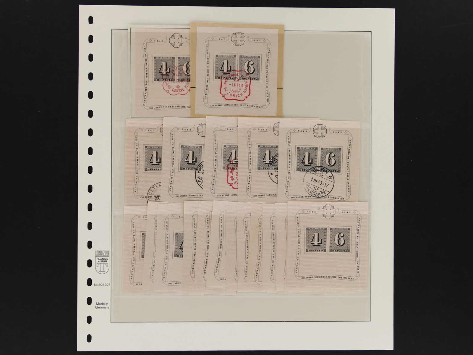 SCHWEIZ: 1943, 21 Blockausgaben 100 Jahre Schweizerische Briefmarken, 14x ungebraucht (Blockmarken postfrisch) und 7x gestempelt, auf Nettobasis kalkuliert, meist gute Qualität (Image)