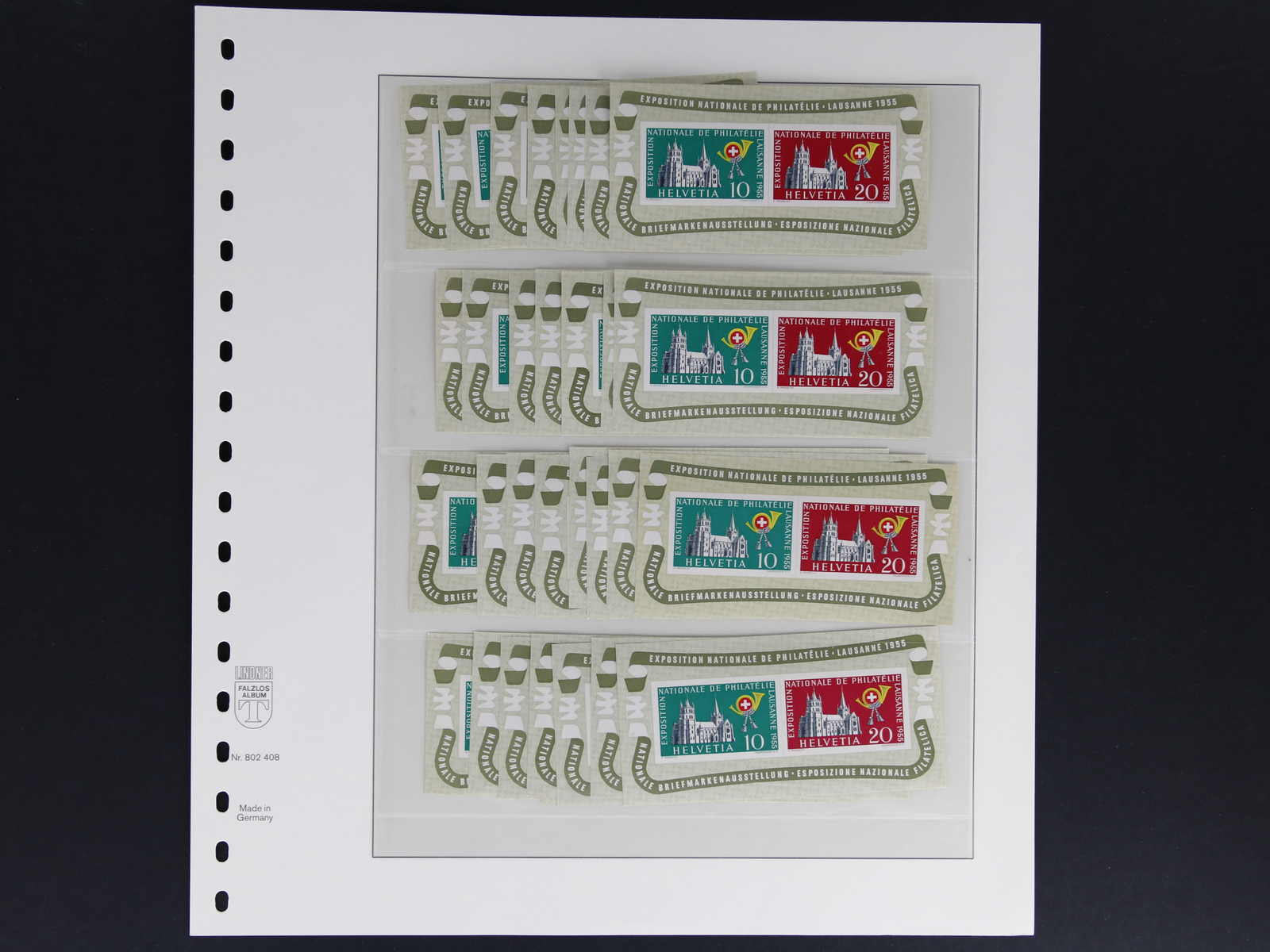 SCHWEIZ: 1955, 33 Blockausgaben Briefmarkenausstellung Lausanne, 17x postfrisch und 16x ungebraucht, auf Nettobasis kalkuliert, meist gute Qualität