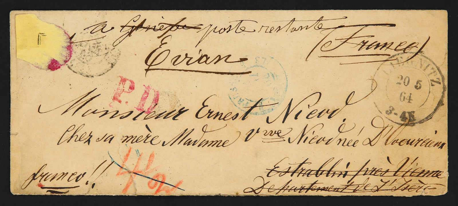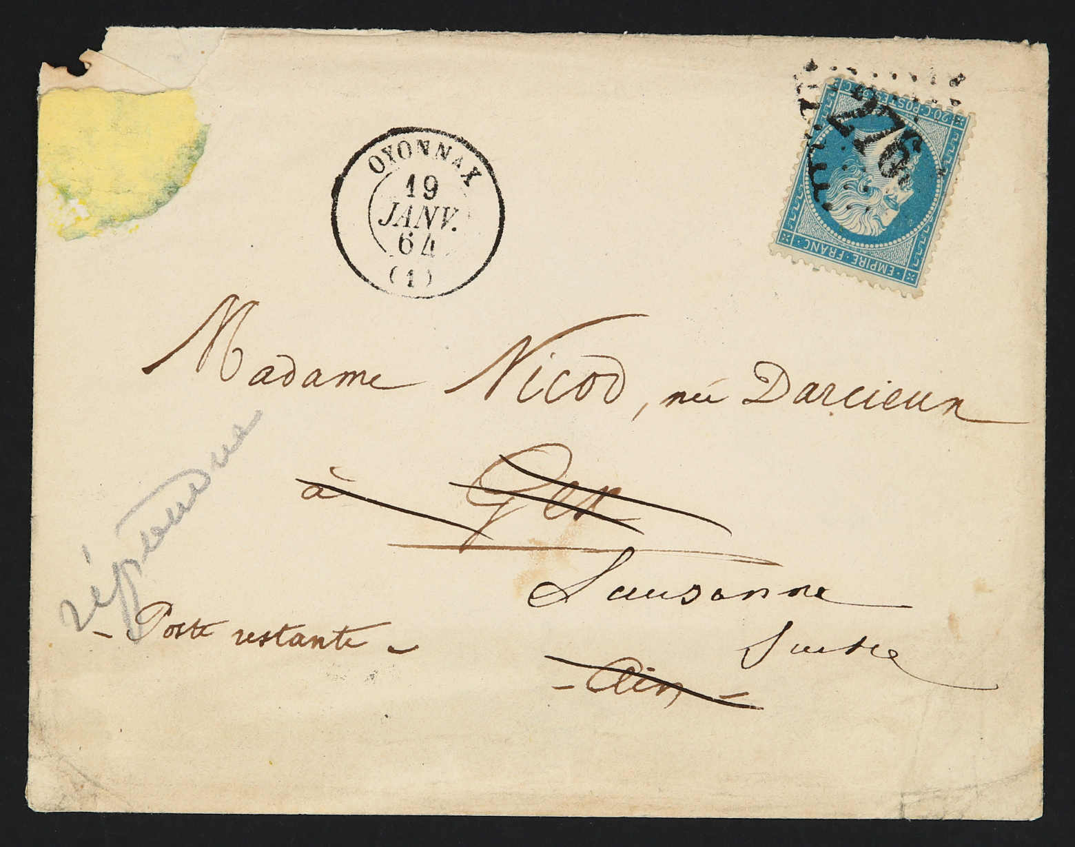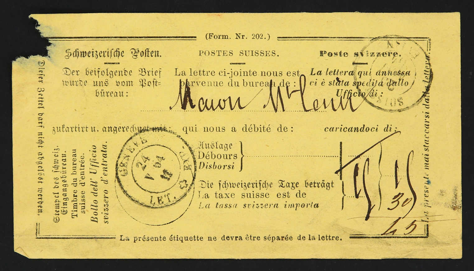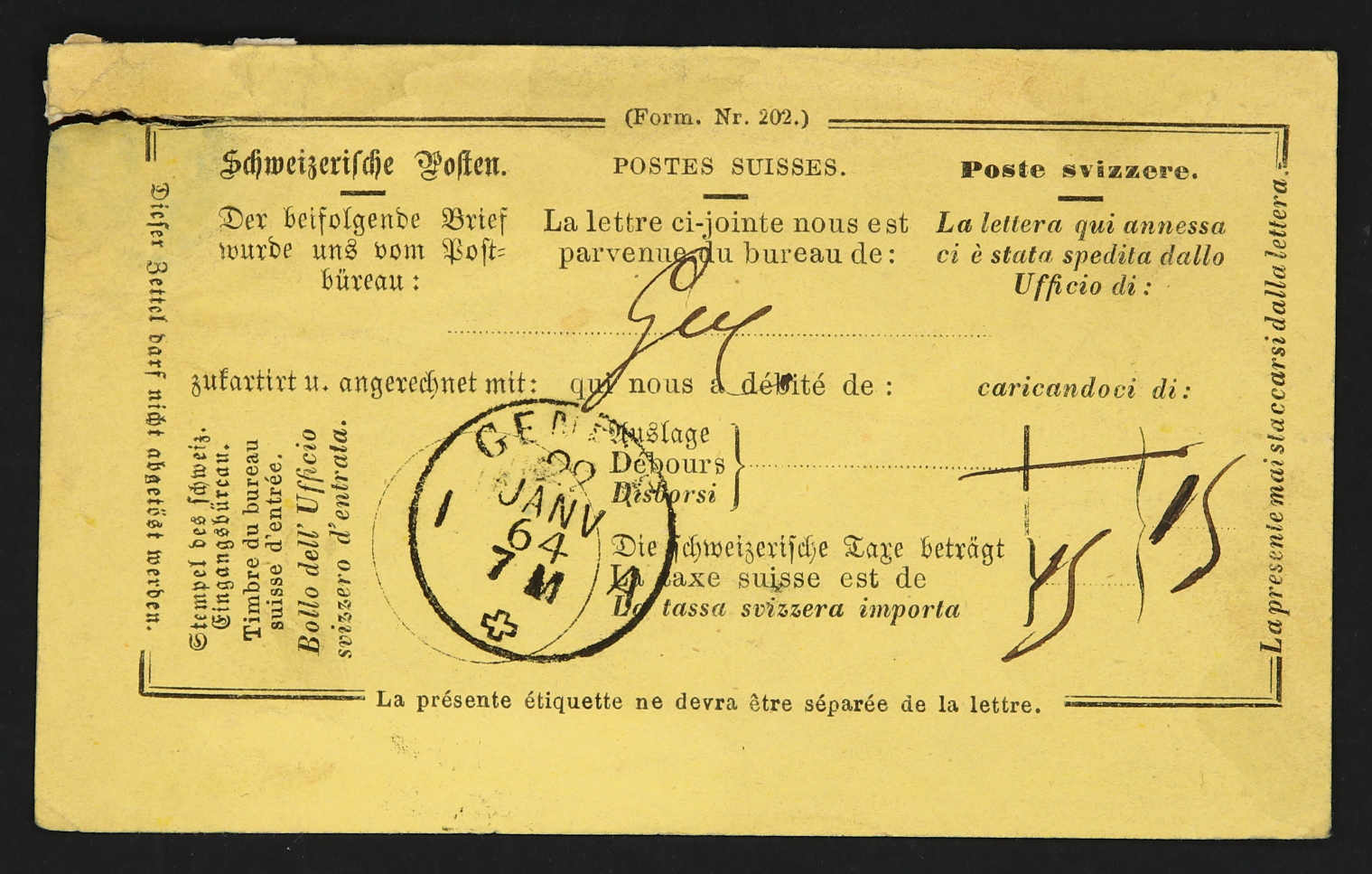 SCHWEIZ: 1864, zwei "poste restante" Brief, 1x aus Liegnits/Deutschland, der andere aus Oxonnax/Frankreich in die Schweiz mit Taxierungsformular