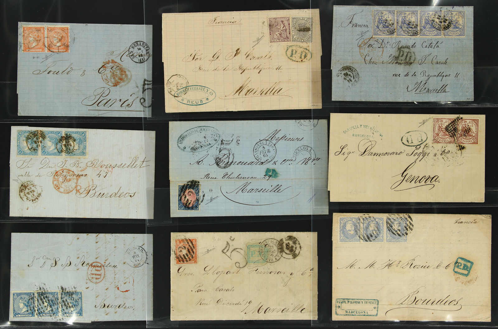 SPANIEN: 1862/74, Partie Klassik-Briefe, zwei innerhalb Spaniens, acht nach Italien, sieben nach Frankreich und einer nach Buenos Aires/Argentinien, gesamt 18 Belege (Image) (imagea)