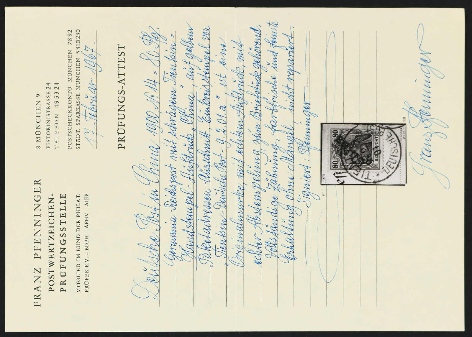 Oberleutnant in Kiautschou, ohne Ankunftsstempel, dekorativ und einwandfrei, Fotoattest Steuer BPP (Image) (imagea)