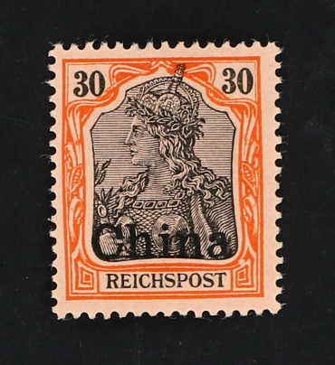 1901, 30 Pfg. Aufdruckausgabe rötlichorange/rotschwarz auf mattgelblichorange, mit Plattenfehler "Kopf des R von REICHSPOST oben schräg abgeschnitten und offen", ungebraucht, einwandfrei, Expertise Dr. Hartung (ME 350,-) (Image) (imagea)