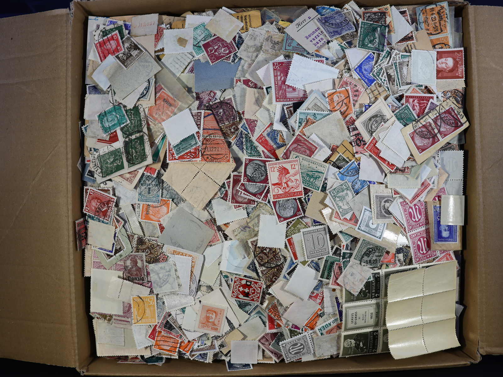 3968 nh, og, gest., Briefst., Brief imageALLE WELT: 1860/1970 ca., Karton 33 x 31 x 8,5 cm randvoll mit tausenden von Marken lose, auf Papier, in Tütchen und alten Restauswahlheften, auch ca. 100 Briefe, Karten, Ganzsachen und Ansichtskarten, dabei viel Deutsches Reich und Nebengebiete, der Hauptteil liegt vor 1945, Fundgrube (Image)