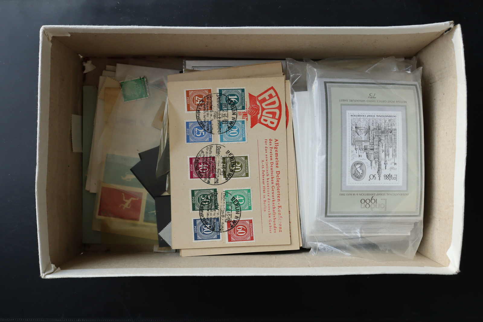 3970 nh, og, gest., Brief imageALLE WELT: 1920/90 ca., Karton mit Lager- und Dublettenbestand, u.a. mit ca. 140 postfrischen und 45 gestempelten Kleinbogensätzen Liechtenstein Mi-Nr. 717-19, ca. 300mal Bund Bl. 5 gestempelt, ca. 200 Blocks Niederlande Amphilex 1977 gest. und ca. 250 Blocks Großbritannien London 1980, dazu weiteres Material auf Steckkarten und Tüten sowie einige Belege, hoher Katalogwert, meist gute Qualität (Image) (imagea) (imageb) (imagec) (imaged)