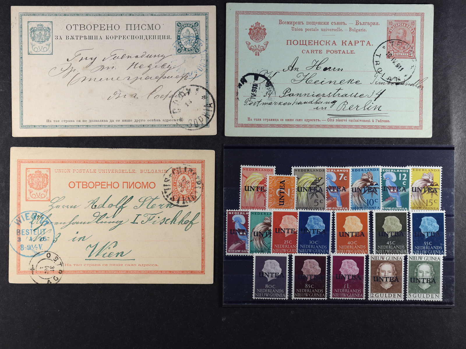 3971 nh, og, gest., Brief imageALLE WELT: 1861/1905, gemischter Bestand teils besserer Ausgaben auf Steckkarten, u.a. mit Deutsches Reich Markenheftchen 32.2 ungebraucht, Luxemburg Mi-Nr. 488-89 und 490-94 postfrisch, Fiume 774-76 postfrisch, Irland 39 III gestempelt sowie Ungarn Bl. 1 und UNTEA 1-19 postfrisch, dazu 3 alte gebrauchte Ganzsachen Bulgarien, gute Qualität (Image) (imagea) (imageb) (imagec) (imaged) (imagee)