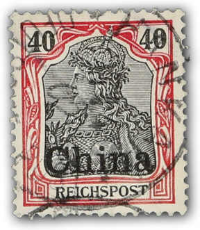 1900, 40 Pfg. Aufdruckausgabe (dunkelrötlich)karmin/schwarz, mit Urmarken-Plattenfehler "das ...ST unten waagerecht abgeschnitten, dabei das zweite S unten weit offen" (PF 11 nach Knop), sauber gestempelt "HANKAU 17/4 02", einwandfrei,