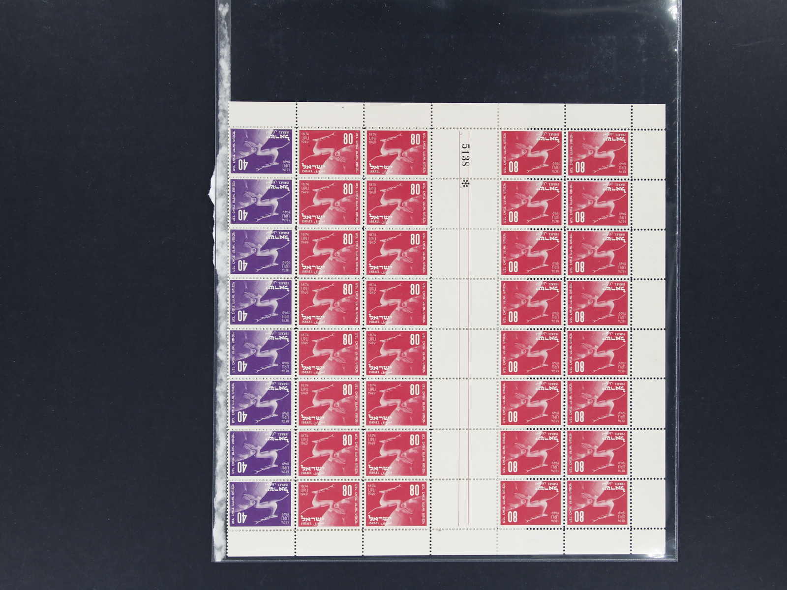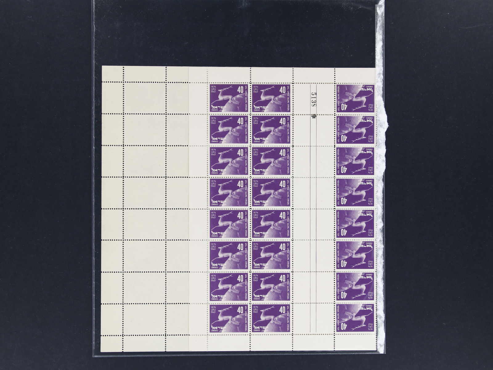 1950, 40 Pr. + 80 Pr. 75 Jahre UPU, Zusammendruckbogen in postfrischer Erhaltung mit 28 KZ + 29 KZ (jeweils 8) und 28 + 29 Kehrdruckpaar (8), mehrfach gefaltet, je eine Marke leicht fleckig bzw. Fingerabdruck, 2 Ründer angetrennt, sonst