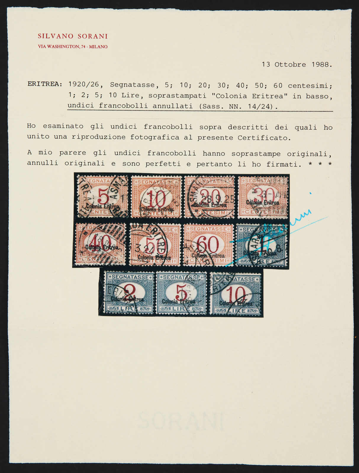 1920/26, postage due issue, full set used with certificate Sorani (Sassone 4.500 Euro) (Image) (imagea)