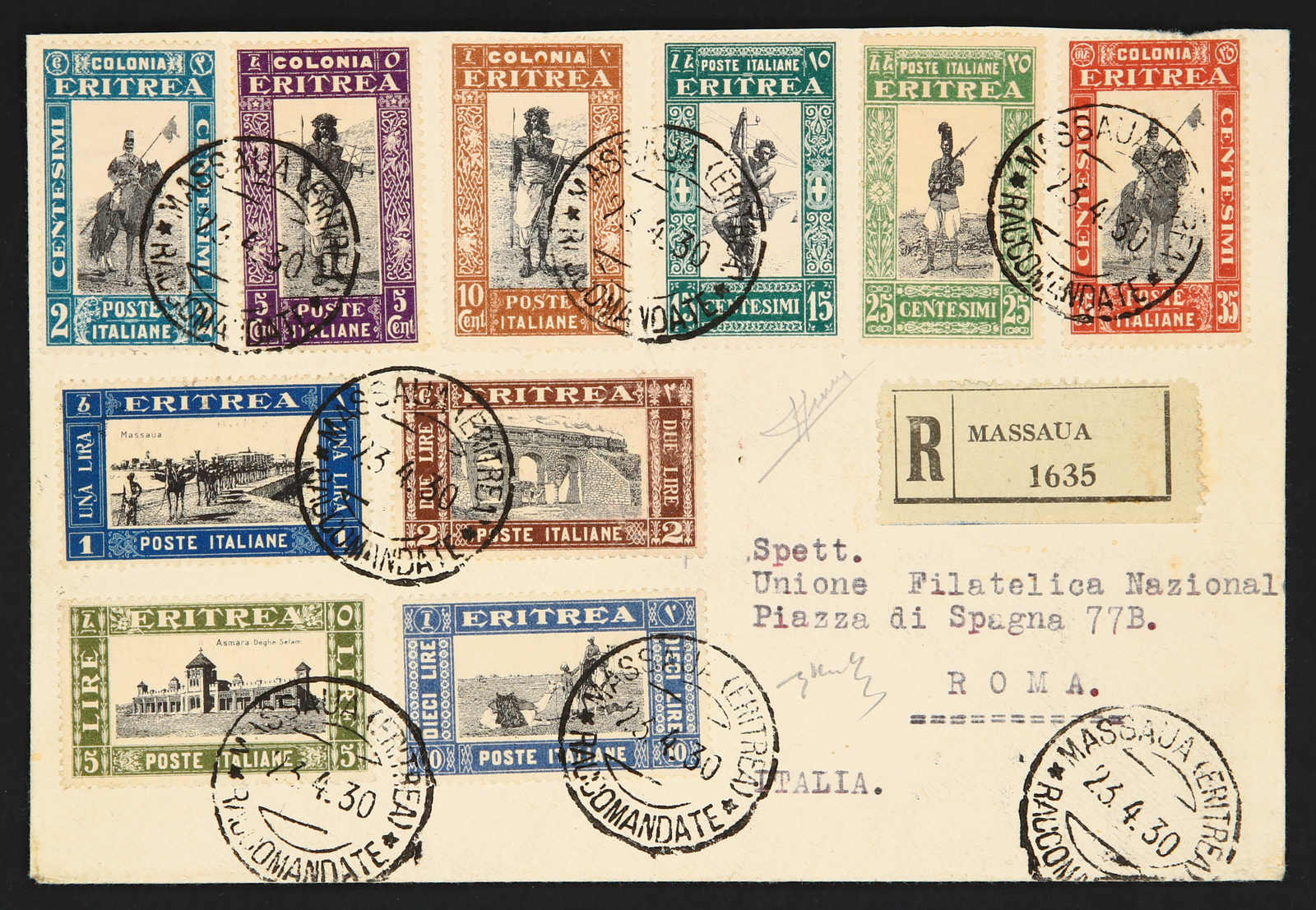 1930, African subjects full set on registered cover sent from Massaua to Roma (Sassone 800 €) (Image) (imagea)