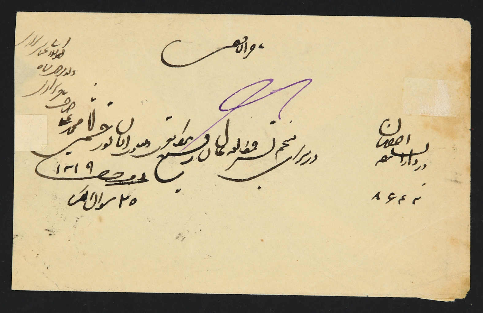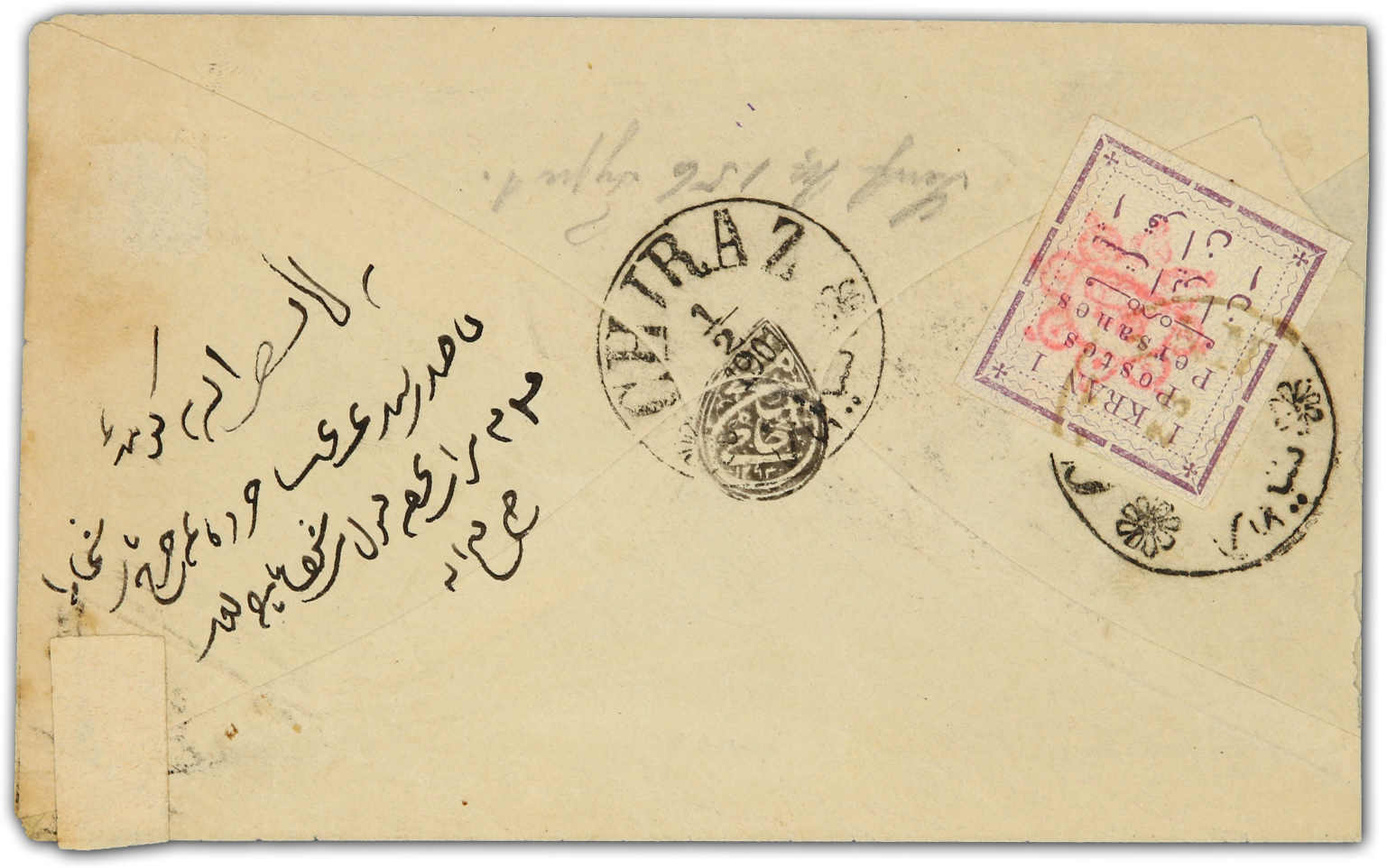 1903, cover sent from Chıraz to Isfahan bearing on reverse 1902 issue 1 k. tied by bilingual "CHIRAZ" cds (Image) (imagea)