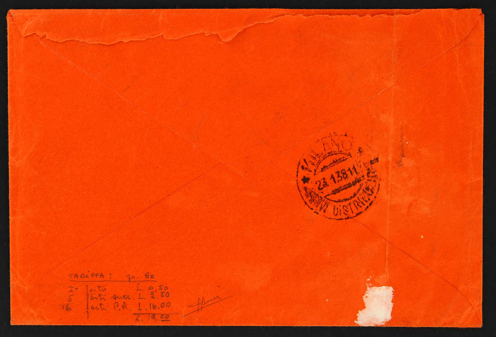 registration label of Tripoli with number 5952, on reverse arrival cds (Sassone 27/30), signed Sorani (Image) (imagea)