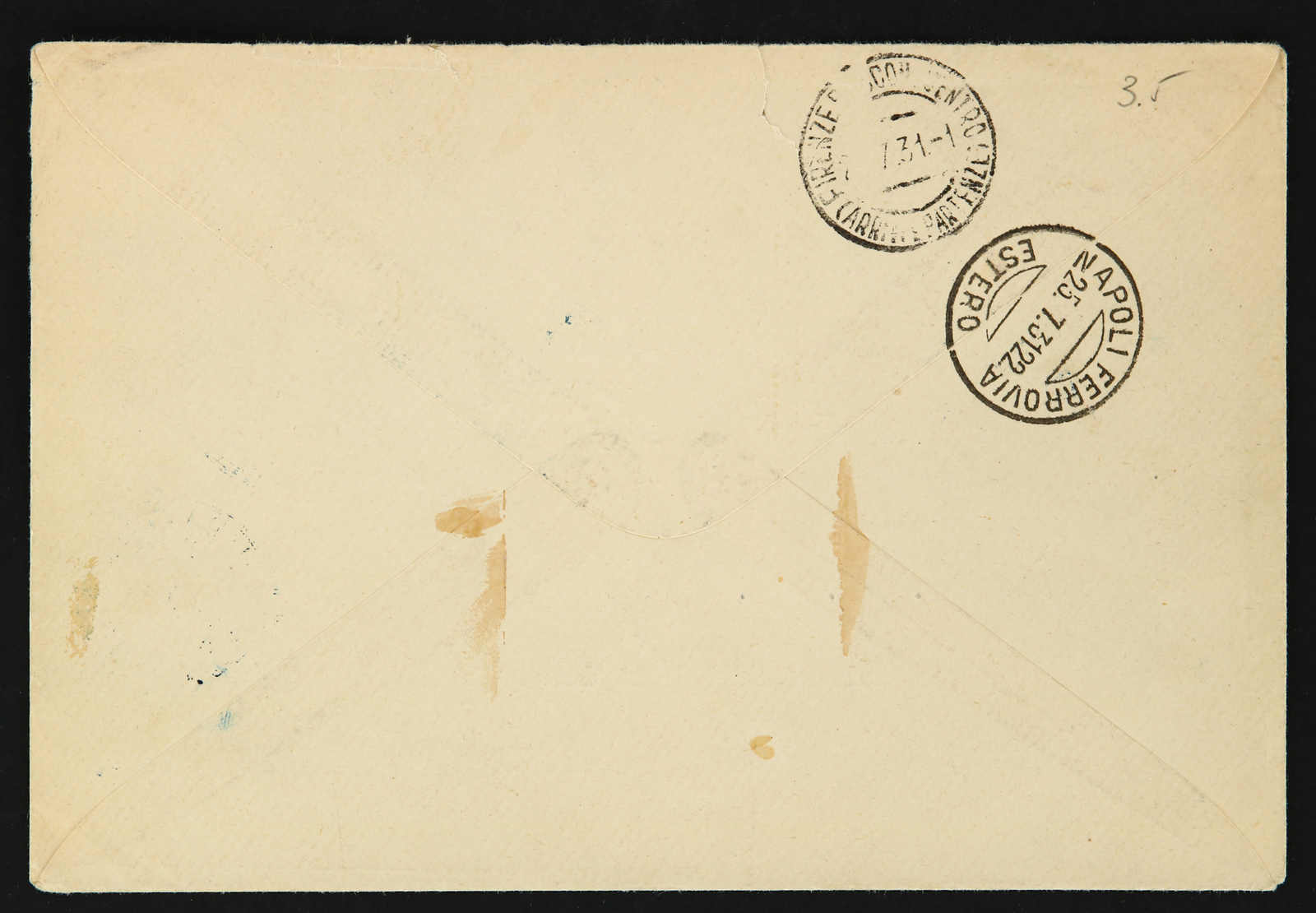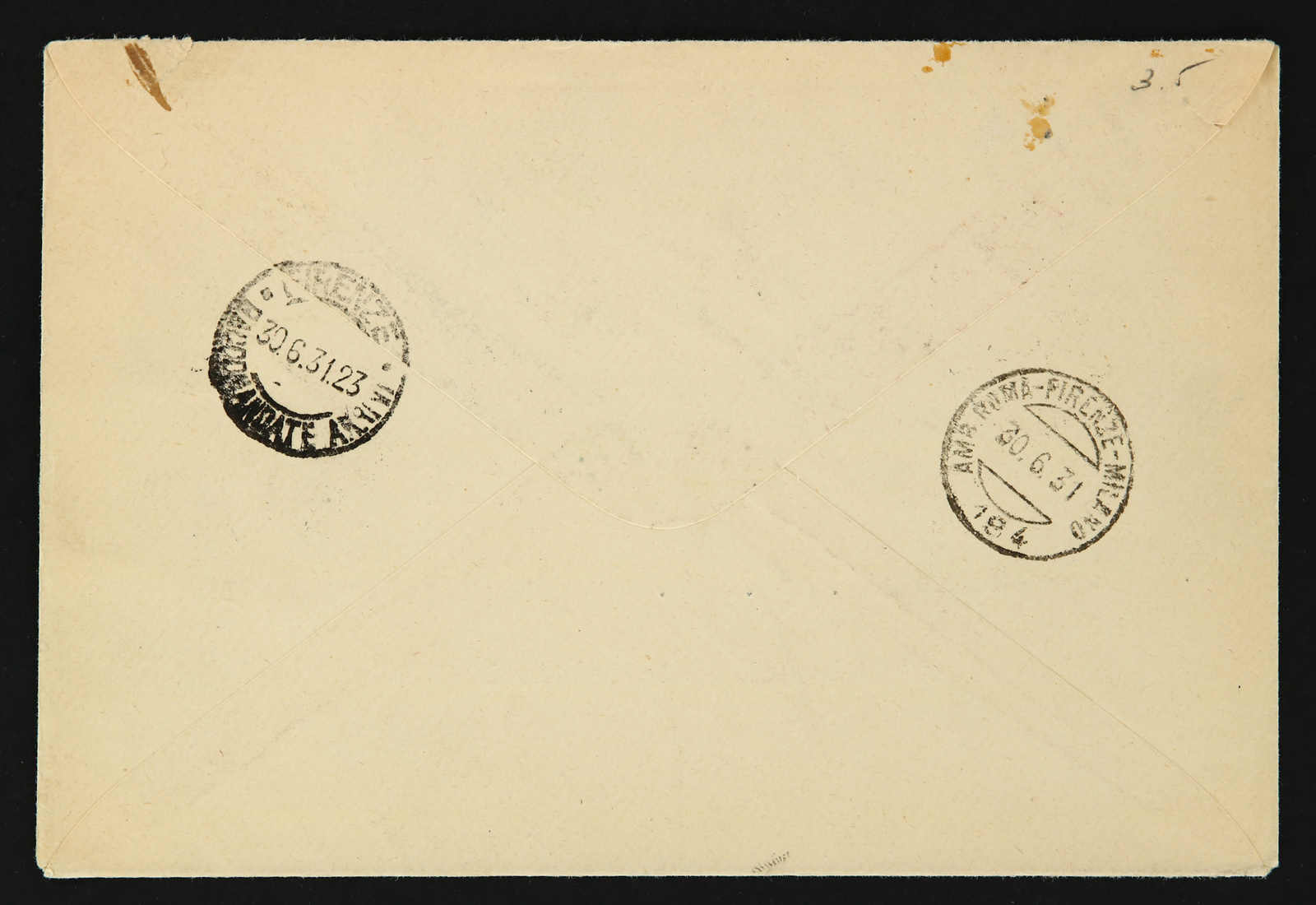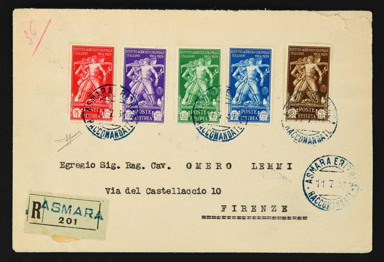 1931, Pro Istituto Agricolo, full set on registered cover sent from Asmara to Firenze, Sassone 174-178, cat. 600 € (Image) (imagea)
