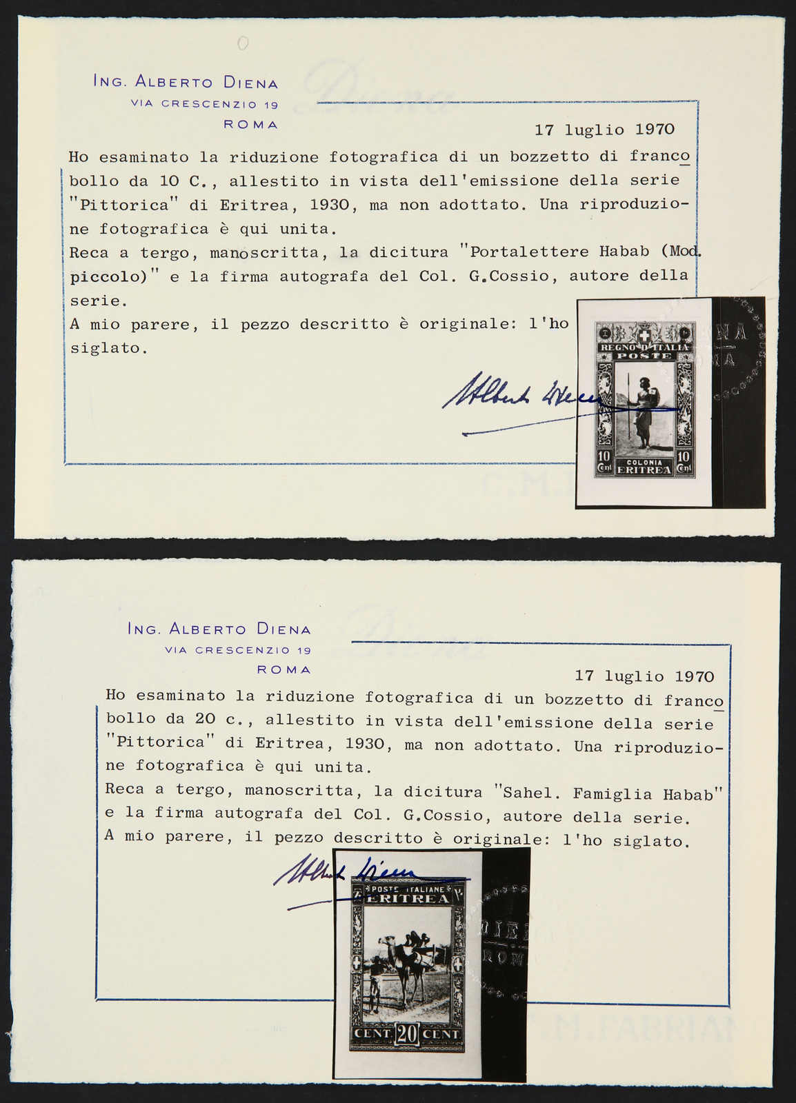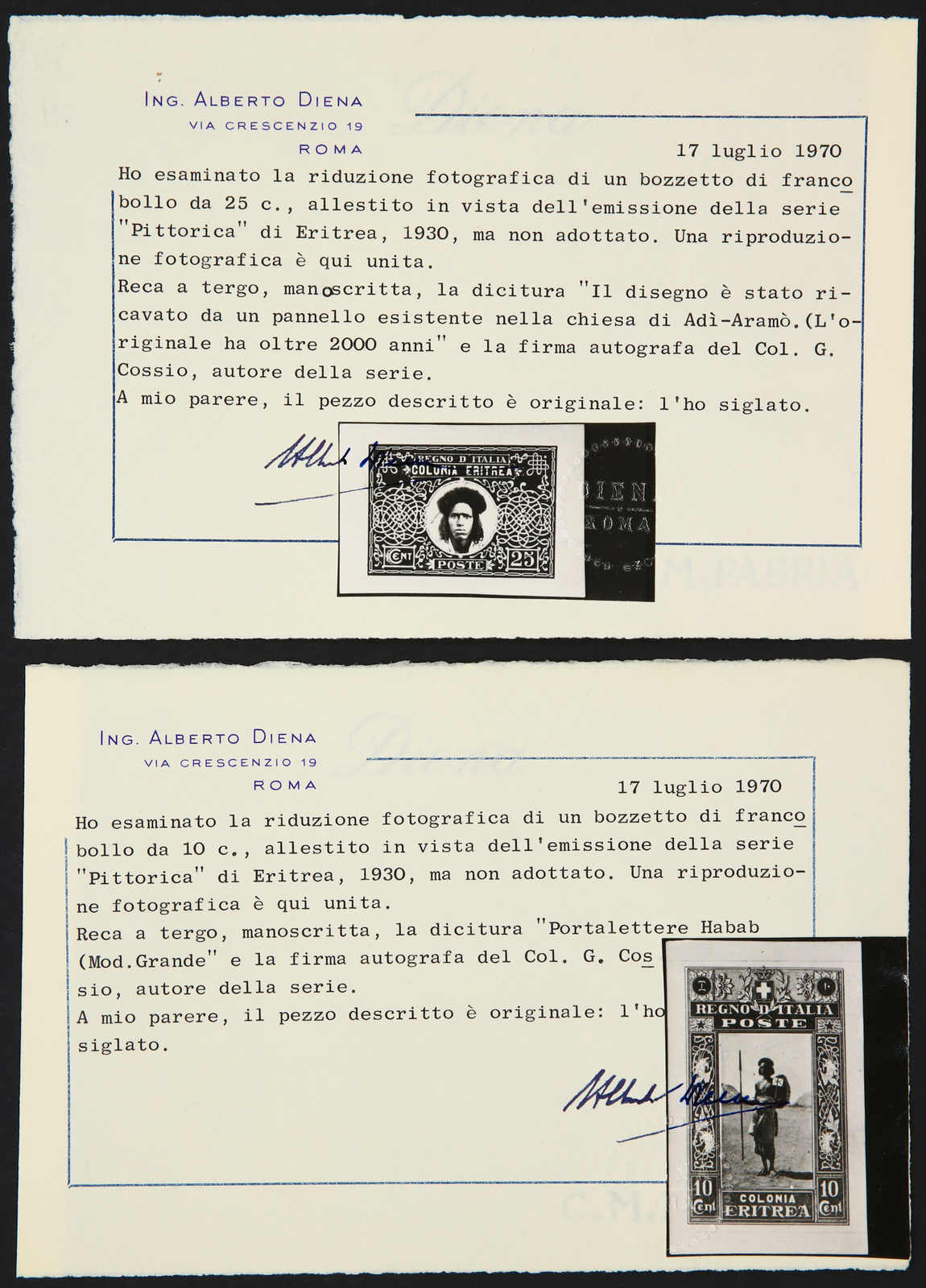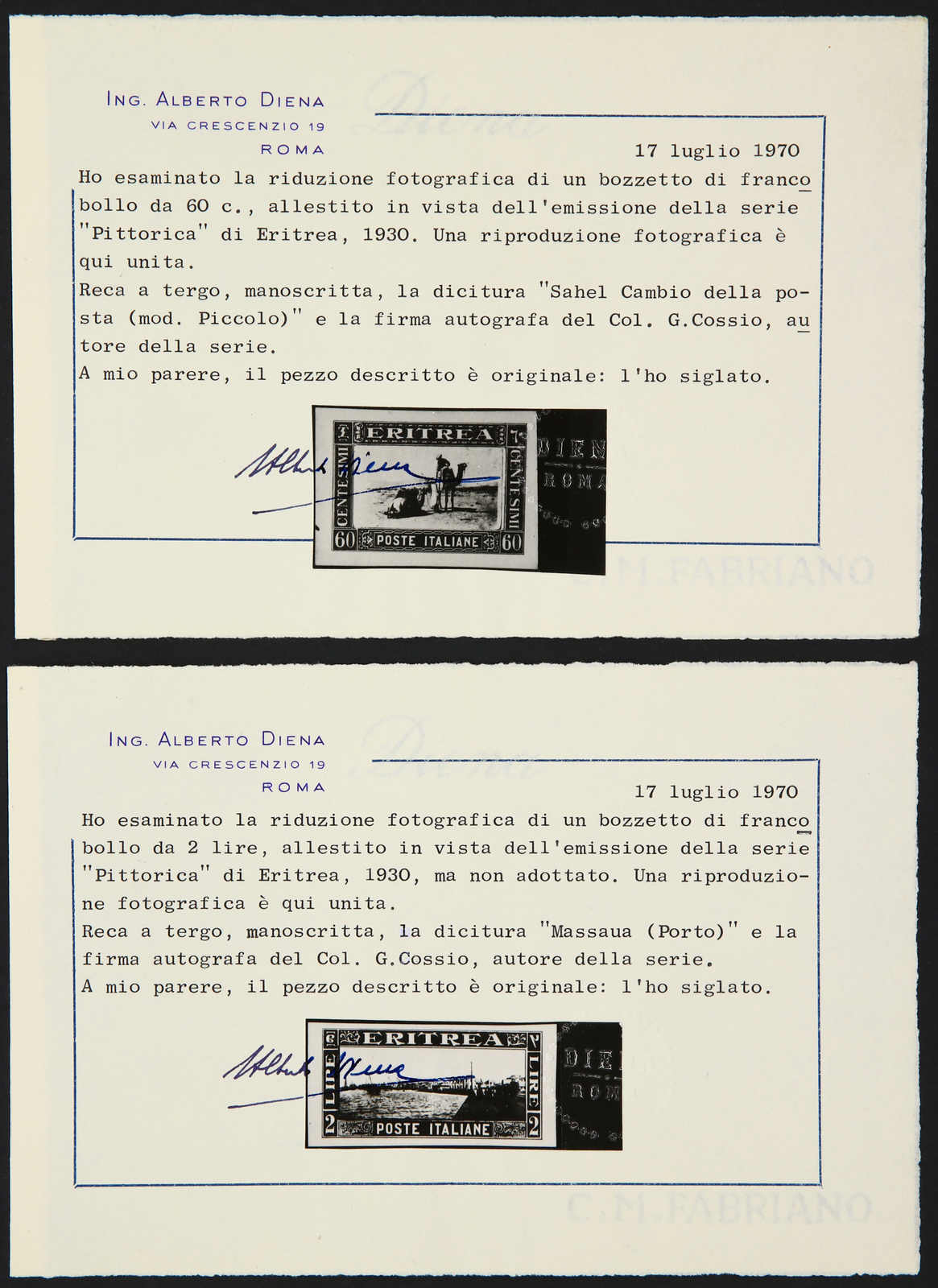 1930, three photo essays for 60 cent., 2 Lire and 10 Lire, each with Alberto Diena certificates (Image) (imagea)